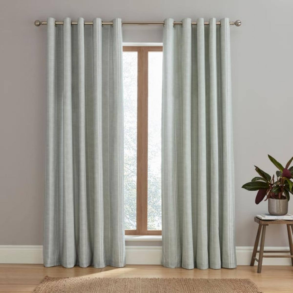 * Gentle yet durable Polycotton composition * Sophisticated striped design * Black out lined * Dry Clean only * Corresponding items available Add understated elegance to your space with the Harley Stripe Blackout Curtains. Featuring a subtle yet refined stripe design printed onto a smooth polycotton fabric, these curtains offer both visual interest and timeless appeal. The blackout lining not only helps block external light but also adds a fuller drape, making them ideal for both light control and stylish bedroom design. Finished with convenient eyelet headers, these curtains are simple to hang and easy to coordinate with the matching Harley Stripe duvet set for a clean, tailored look. This collection is verified by OEKO-TEX® and independently tested for harmful substances as well as manufactured using sustainable processes under socially responsible working conditions. MADE IN GREEN by OEKO-TEX® is a unique product label to trace the countries and production facilities - search the product label for more information.