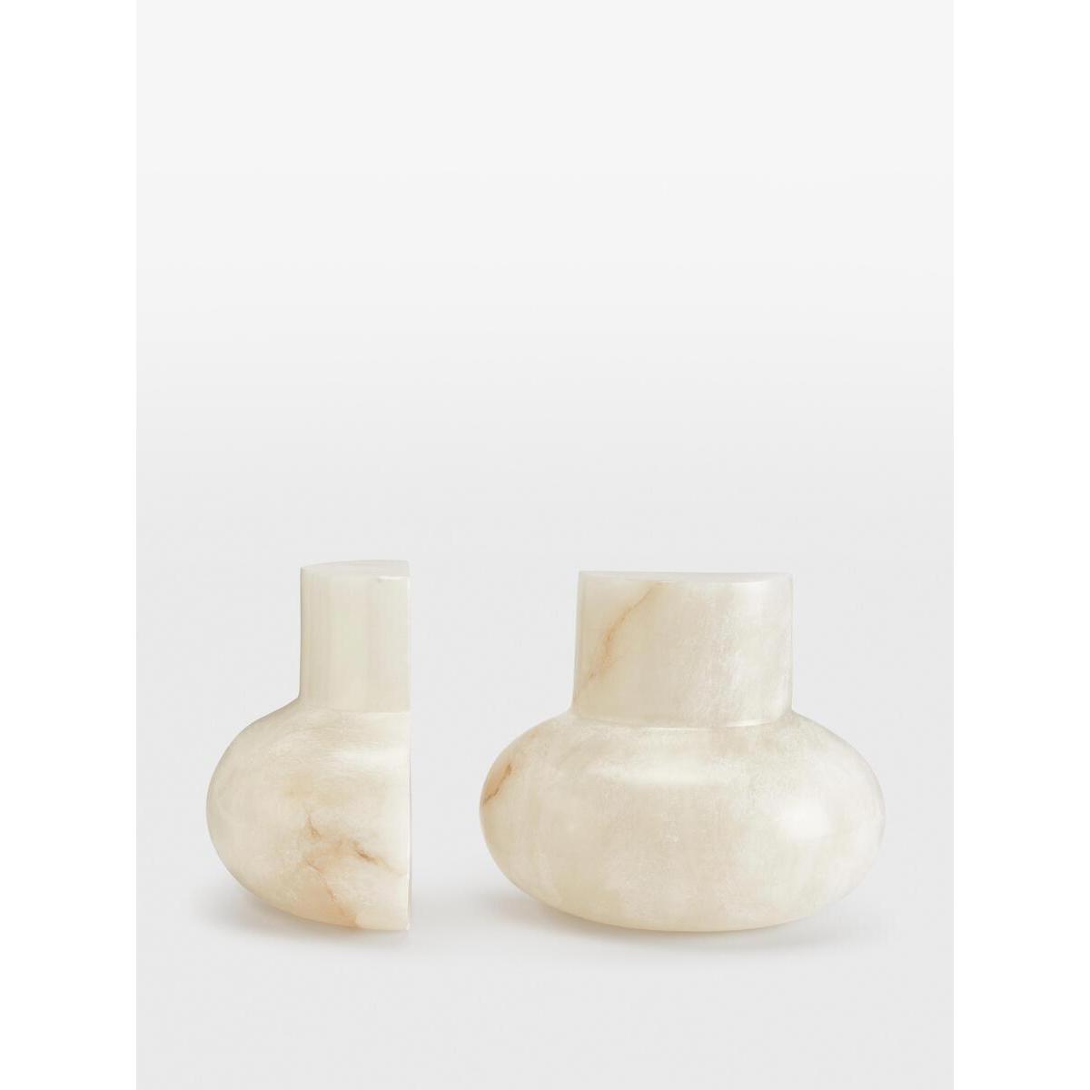 Crafted from natural alabaster, our Harling bookends bring a touch of sophistication to your bookcase with no two styles the same. Echoing the bulbous shape of our Ava Vase, they also draw inspiration from the 1970s interiors of 180 House. Set of two bookends Crafted from natural alabaster No two styles are the same Inspired by 180 House