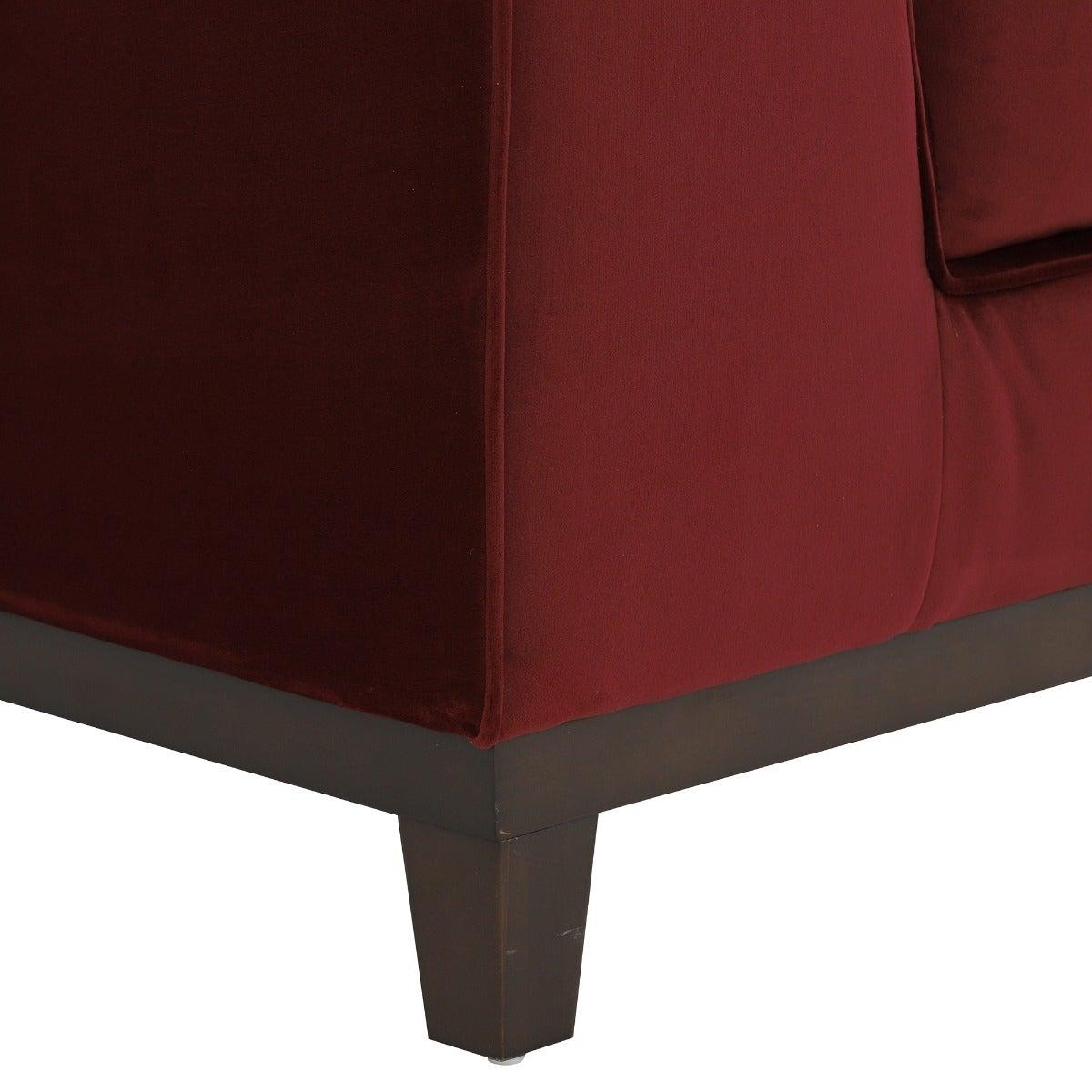 Design. Add opulenceand glamourinto your homewith the Harlow 2 Seater Velvet Sofa, Burgundy. Providing luxuriouscomfort,the high resilient foam seats and Dacronfibreback cushions are wrapped inanelegantburgundy velvetfabriccontrasting wonderfully with thecountrified timber feet.