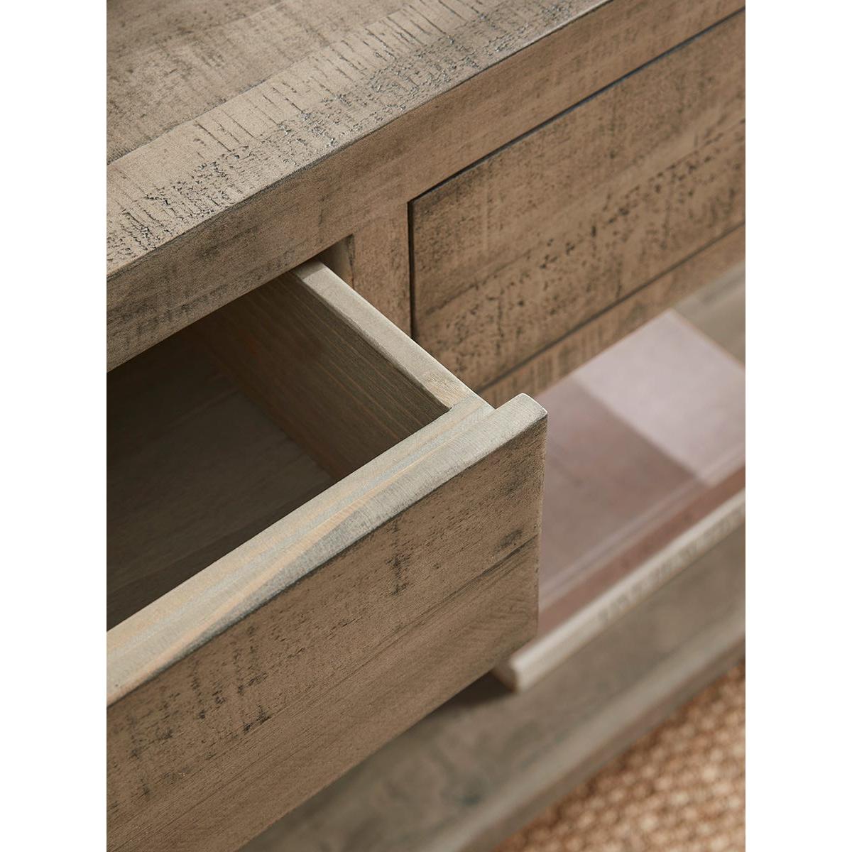 With a natural grain, our Harlow console table is crafted from pine, giving it a laid-back and rustic appeal. The cool tones on the wood blend seamlessly with the brass toned handles, giving it a unified look.  Two drawers pair with shelves to allow for ample storage space. Pair with our Harlow sideboard and shelf unit for the complete look.