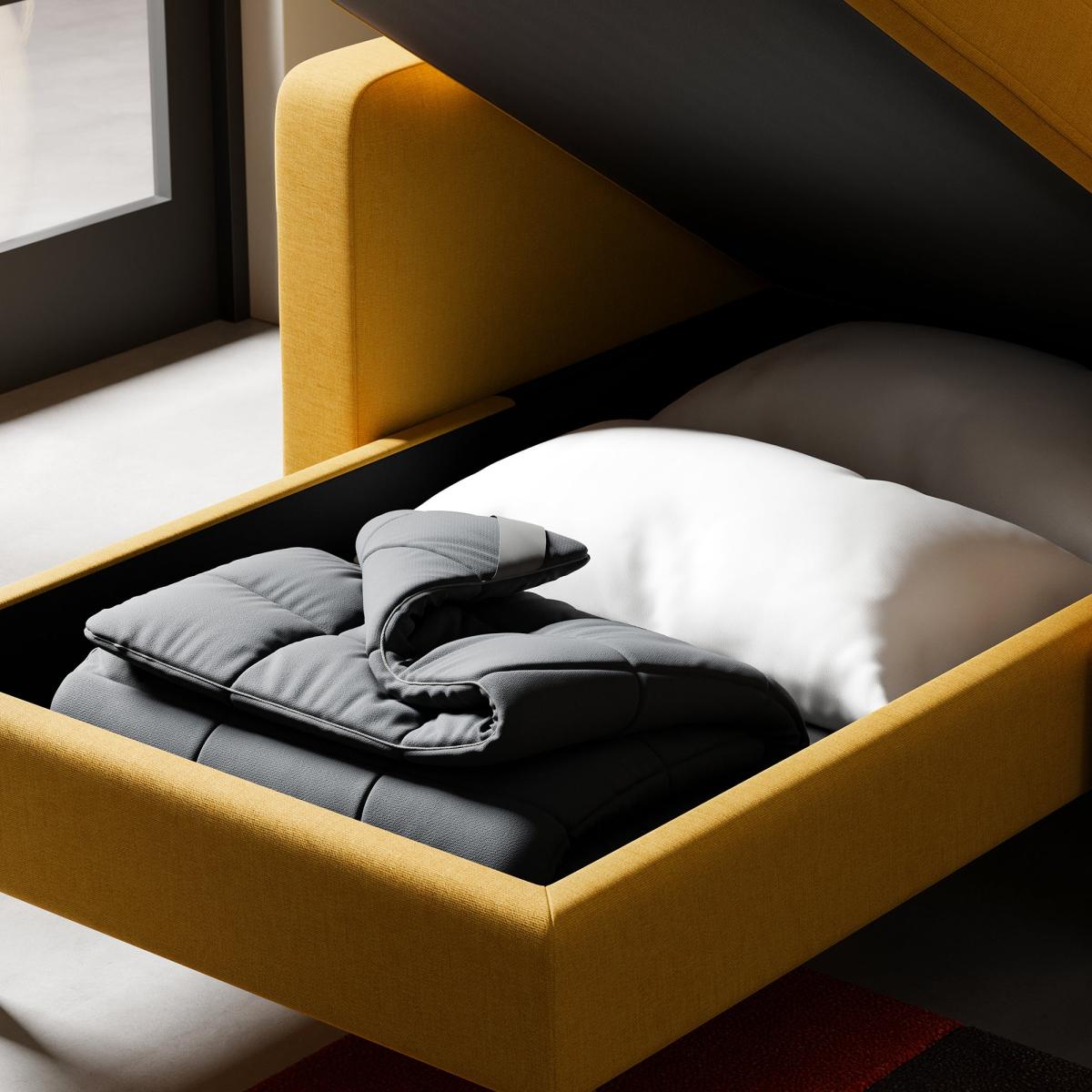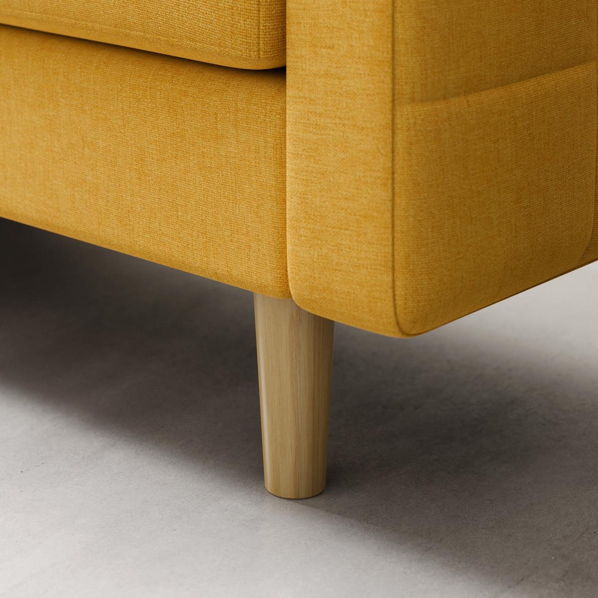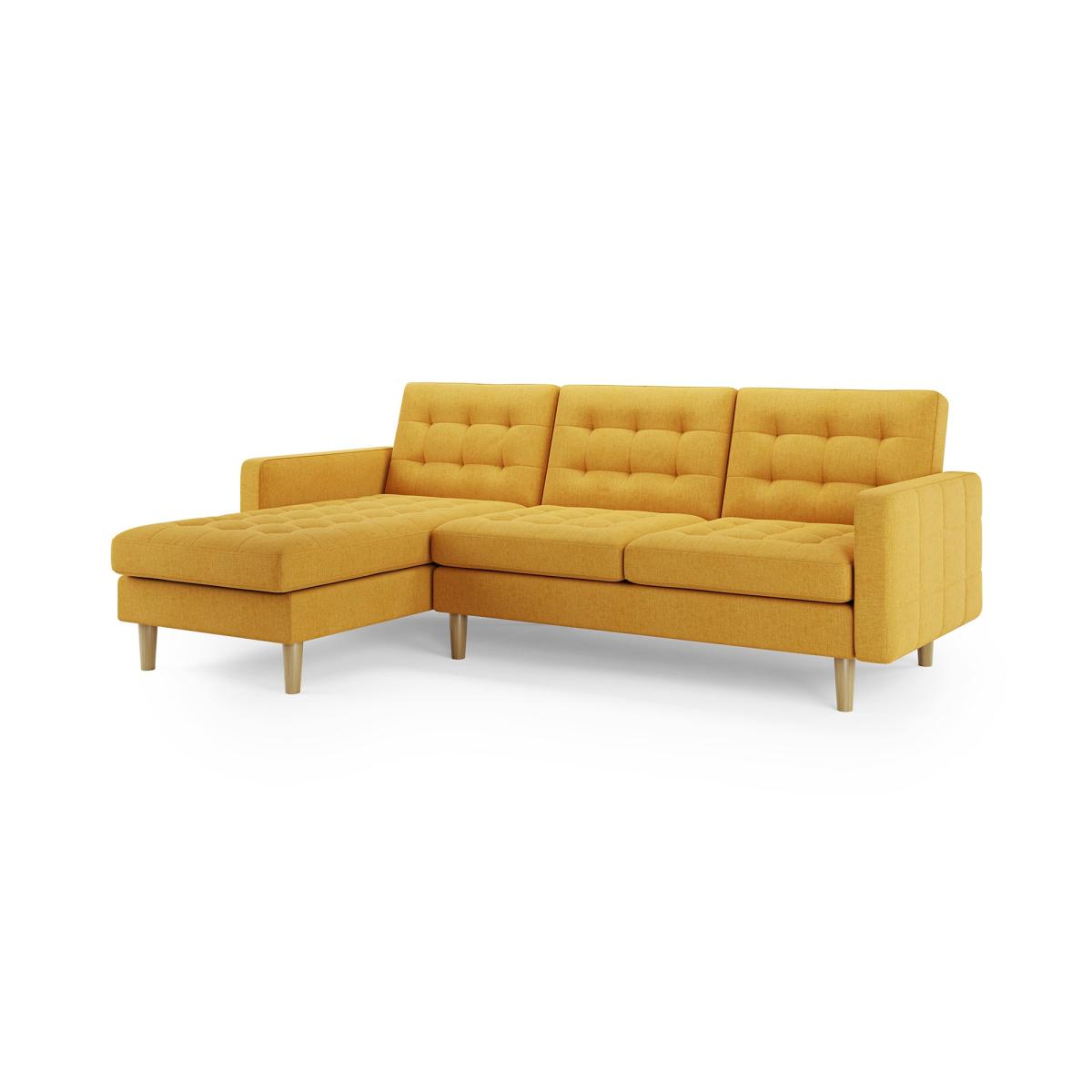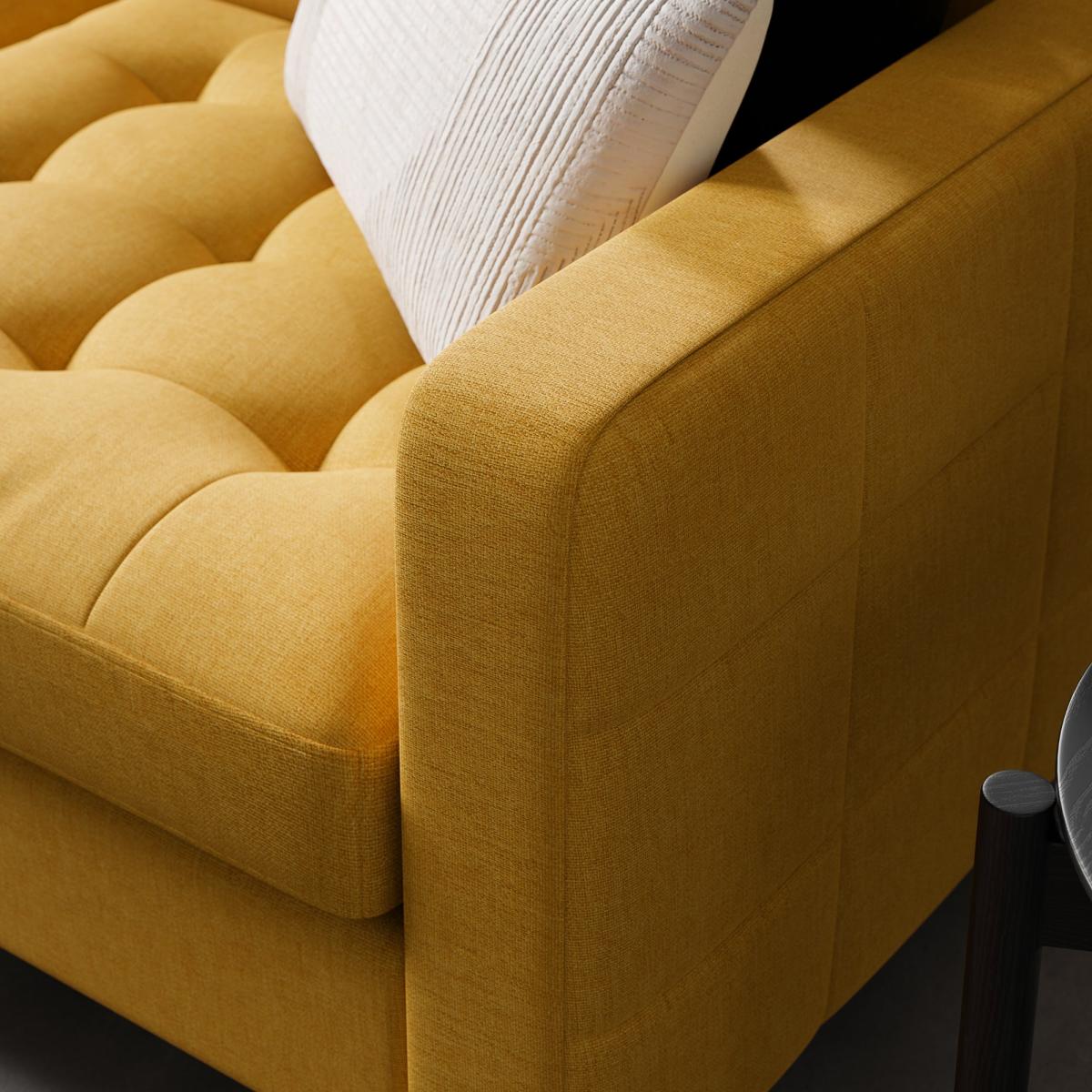 I love this sofa for its bold ochre colour and sleek, modern silhouette, which instantly adds warmth and personality to a space. It works particularly well in contemporary or mid-century inspired interiors, where clean lines and vibrant accents make a statement. Practical styling tips include pairing it with neutral or muted-toned cushions to balance the colour, and grounding the look with a layered rug, like the one in the picture. Its corner design is ideal for maximising seating in compact spaces or creating a cosy lounge area in open-plan rooms. As a sofa bed, it also offers versatility-perfect for hosting overnight guests without compromising style.