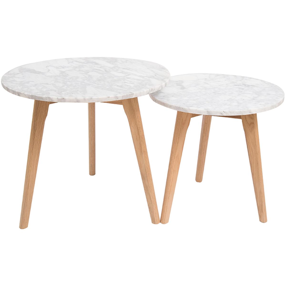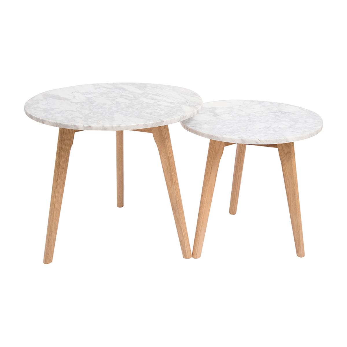 This Harlow Oak & White Nest Of Tables are a pair of elegant traditional style tables that can serve a variety of functions in a room. Constructed from solid oak with a white marble worktop, these tables are simple in their design which only lends to their elegant look. Perfect for displaying ornaments, photos, lamps & other decorative furniture, these tables can be kept together in a room or separated.