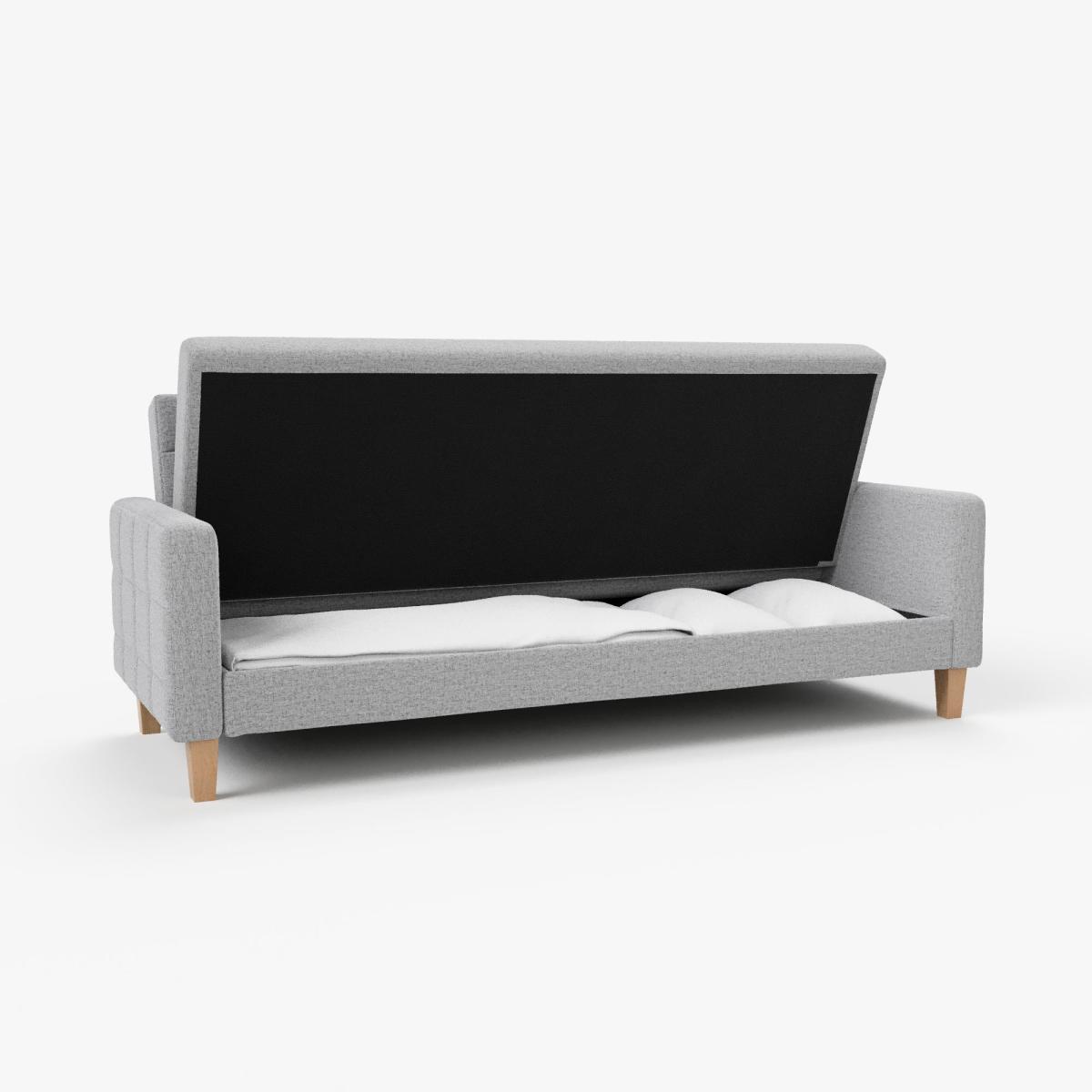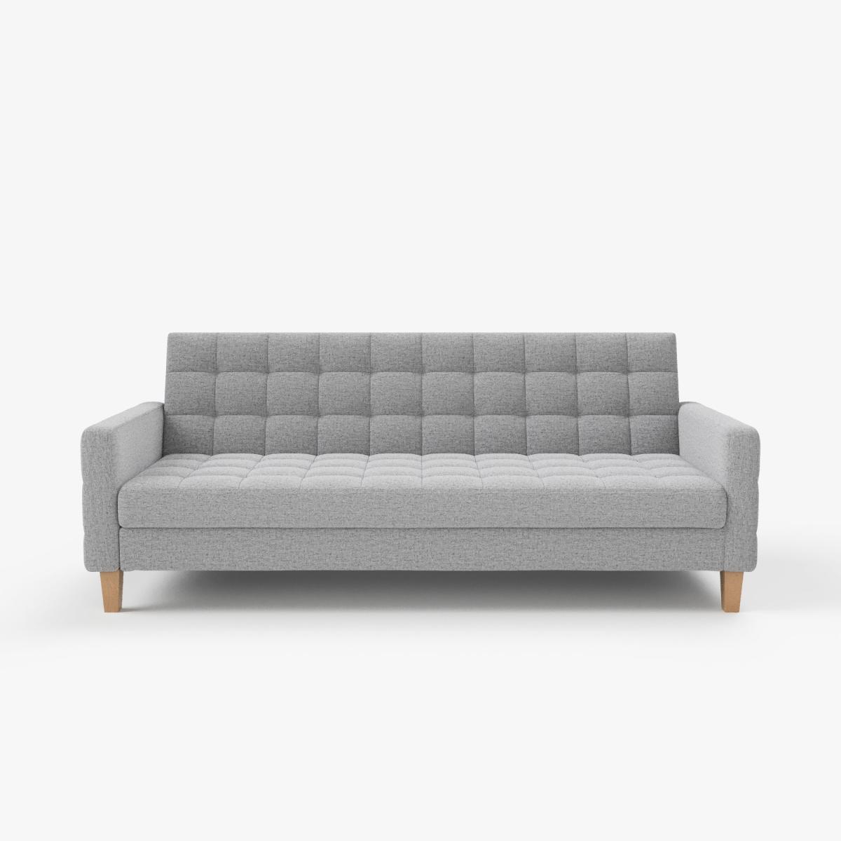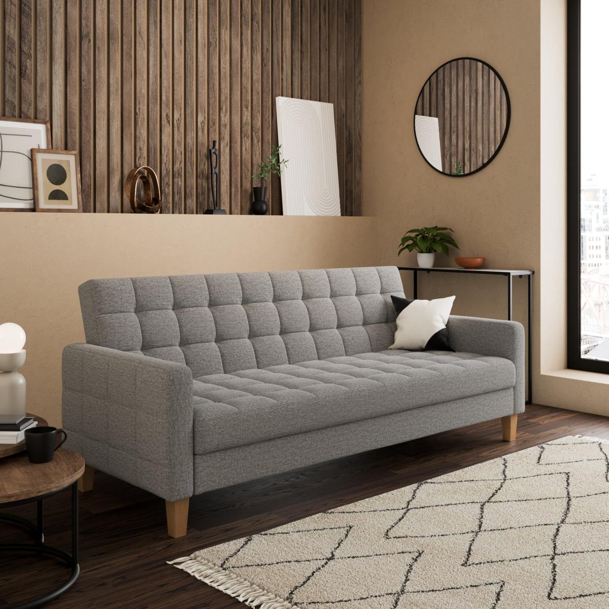 This sofa bed is so stylish and practical you might never want to leave it. The art deco inspired design and soft flatweave upholstery, with beechwood legs make this a statement piece sure to draw attention. Made of foam and fibre, you'll enjoy the cushy feel of its seat or back, whatever position you choose!