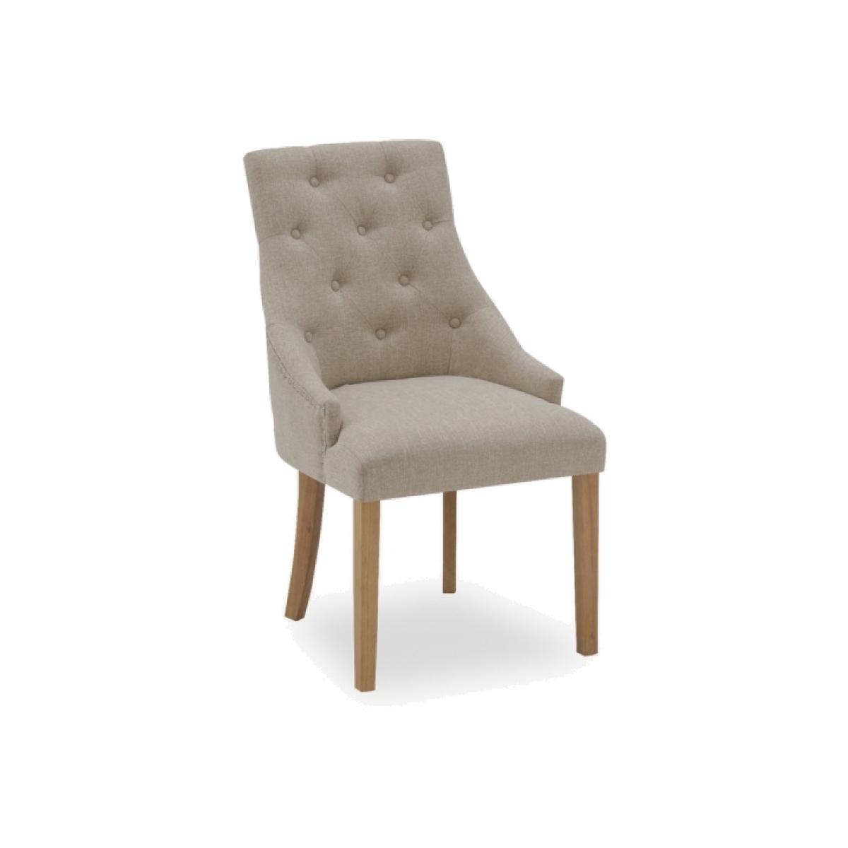 Our Harper dining chair adds the comfort factor back into fine dining with an understated elegance to your dining room. Featuring natural linen upholstery, the curved lines and padded seat offer maximum comfort, and we love the detailing; the buttoned back and polished silver studs give a luxurious feel. Complimented with solid wooden legs, place around the dining table, or use it as an occasional chair in your bedroom. Seat Material: Linen Leg Material: Rubberwood Assembly:Legs to be fitted Download Assembly Instructions Care: Professional Cleaning Required Dimensions Total Size: H 99 x W 50 x D 64cm Seat Height: 48cm Weight: 17kg Packing Dimensions 51 x 74 x 58cm. Buy your Harlyn Scoop Back Dining Chair, Natural Linen from a wide range of Furniture, Chairs