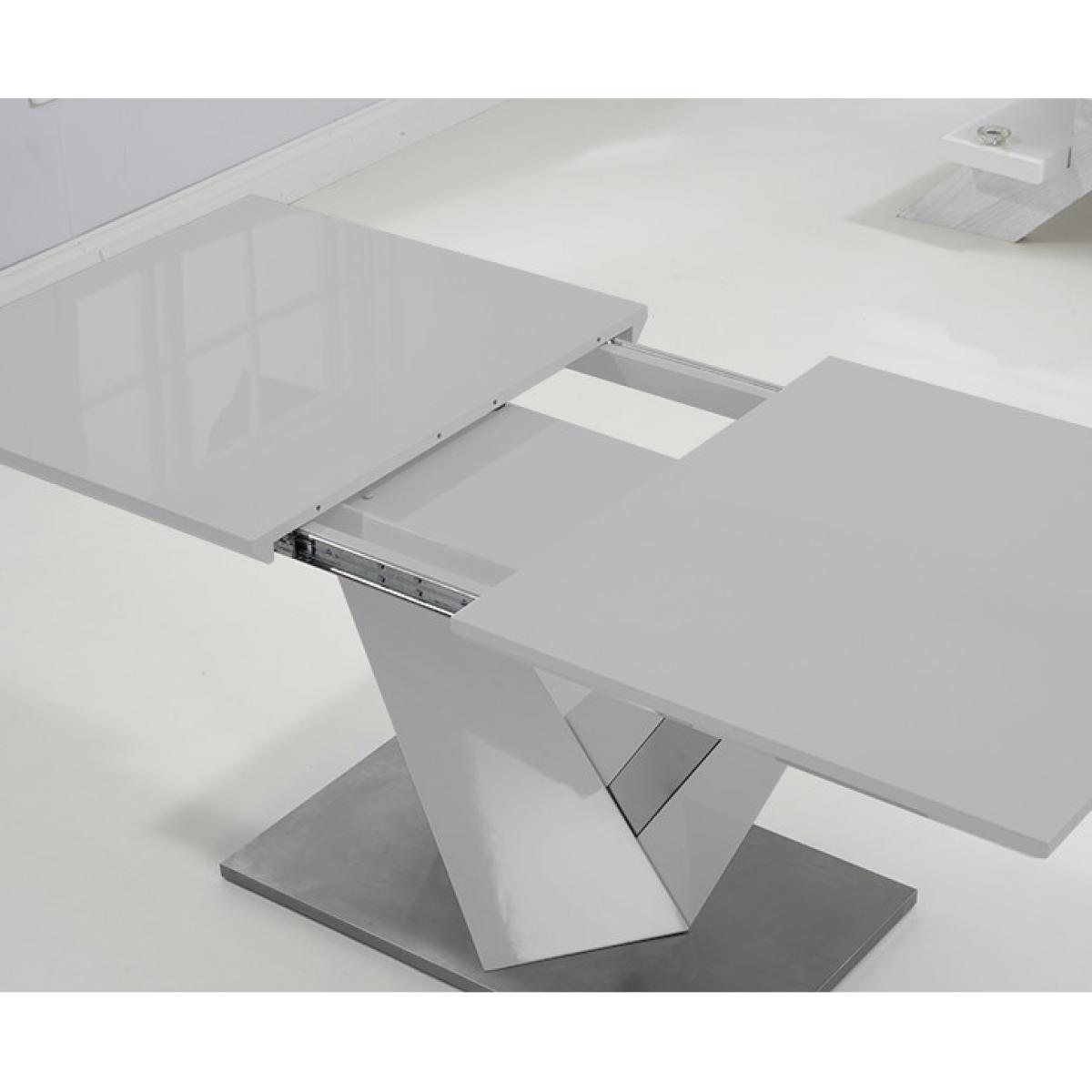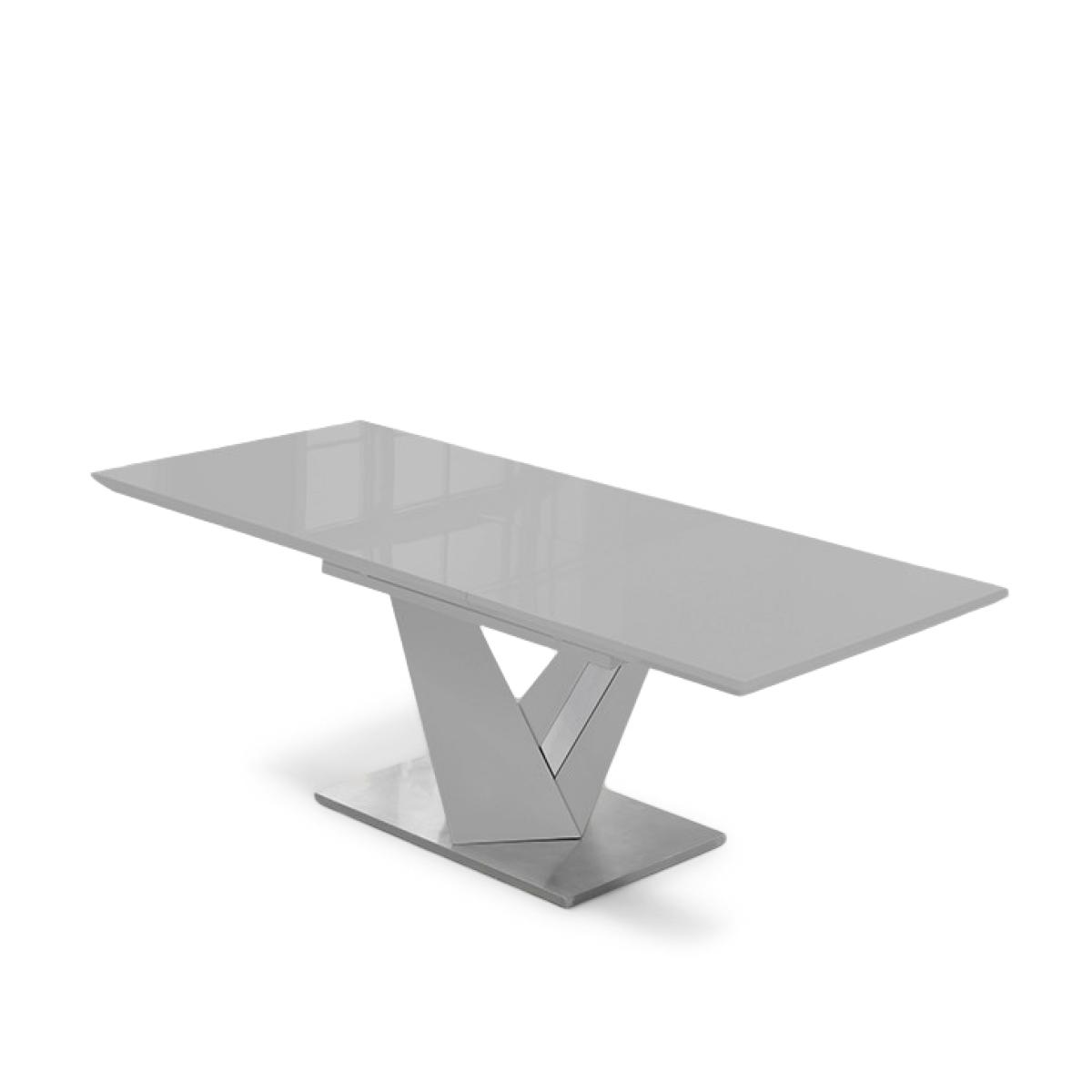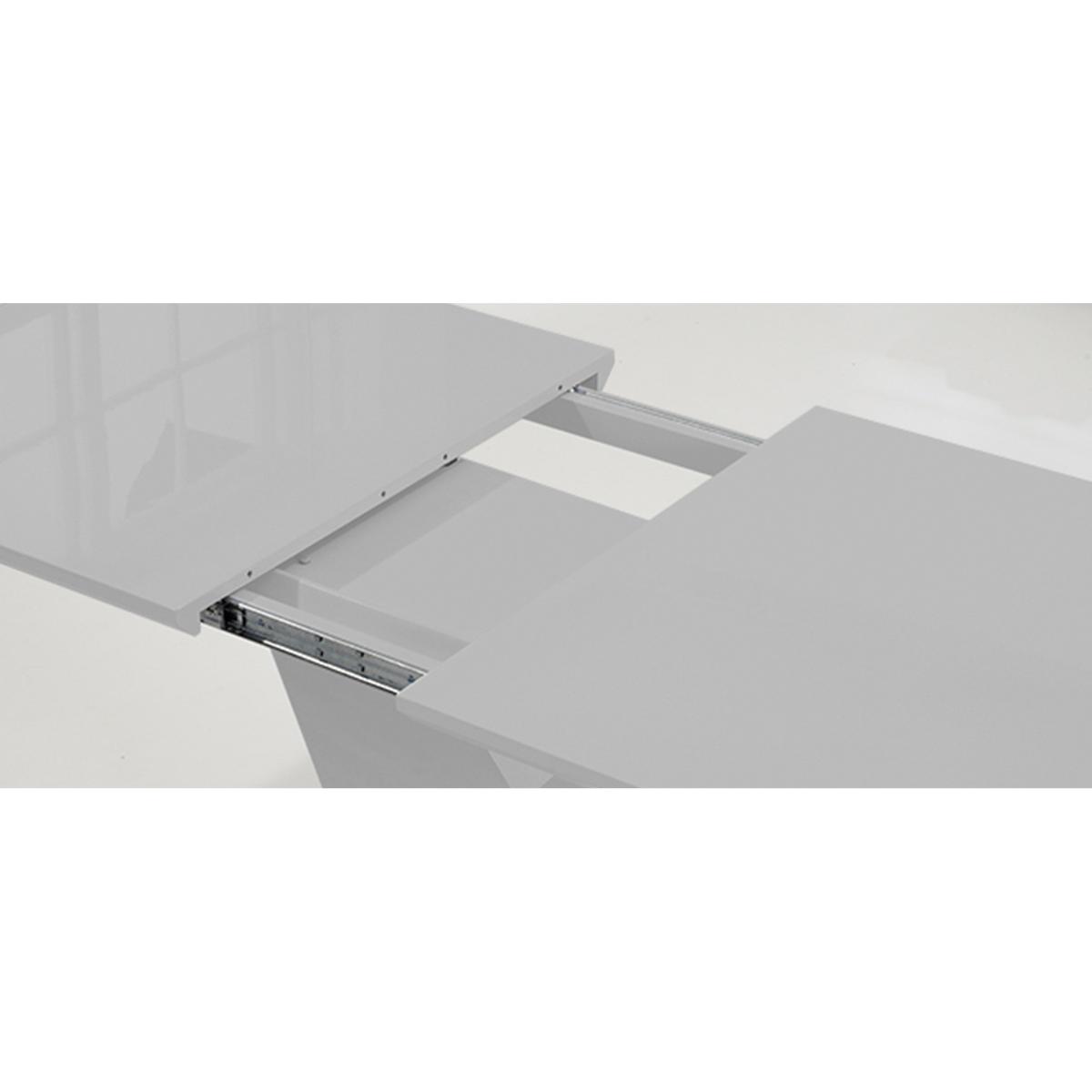 The high gloss surface of the Harmony table smoothly slides open to reveal an internally stored extension panel.