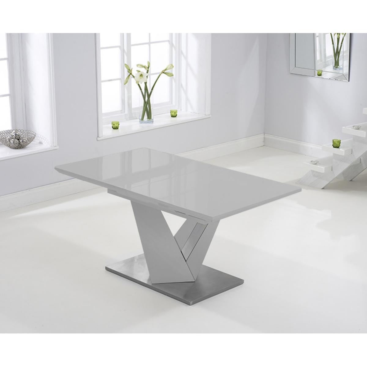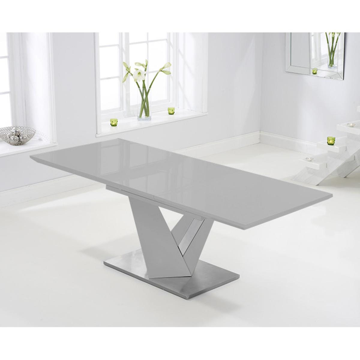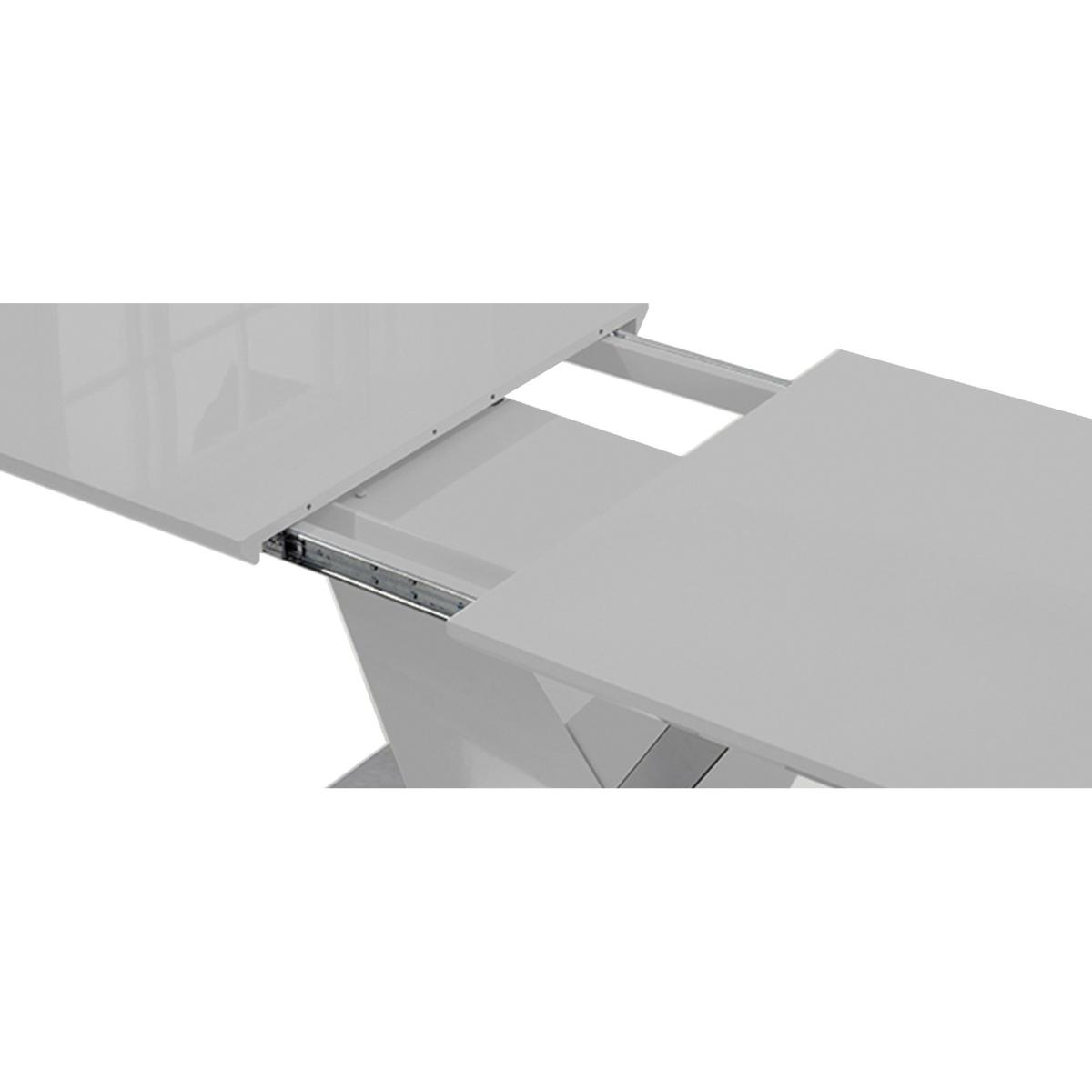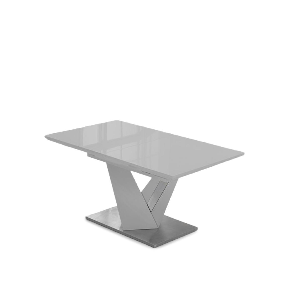 The high gloss surface of the Harmony table smoothly slides open to reveal an internally stored extension panel.