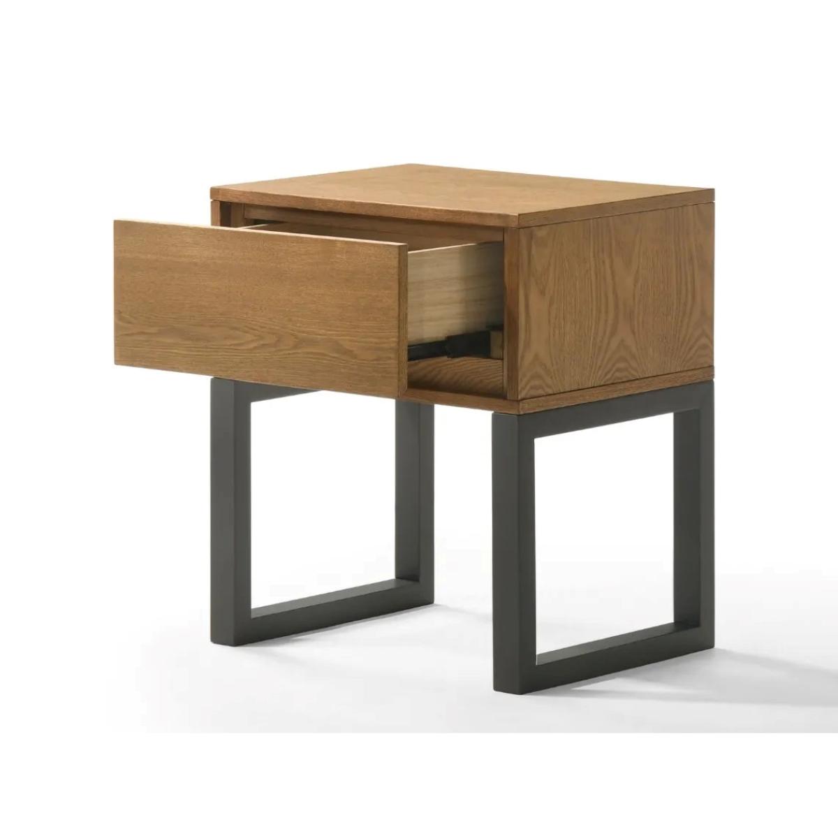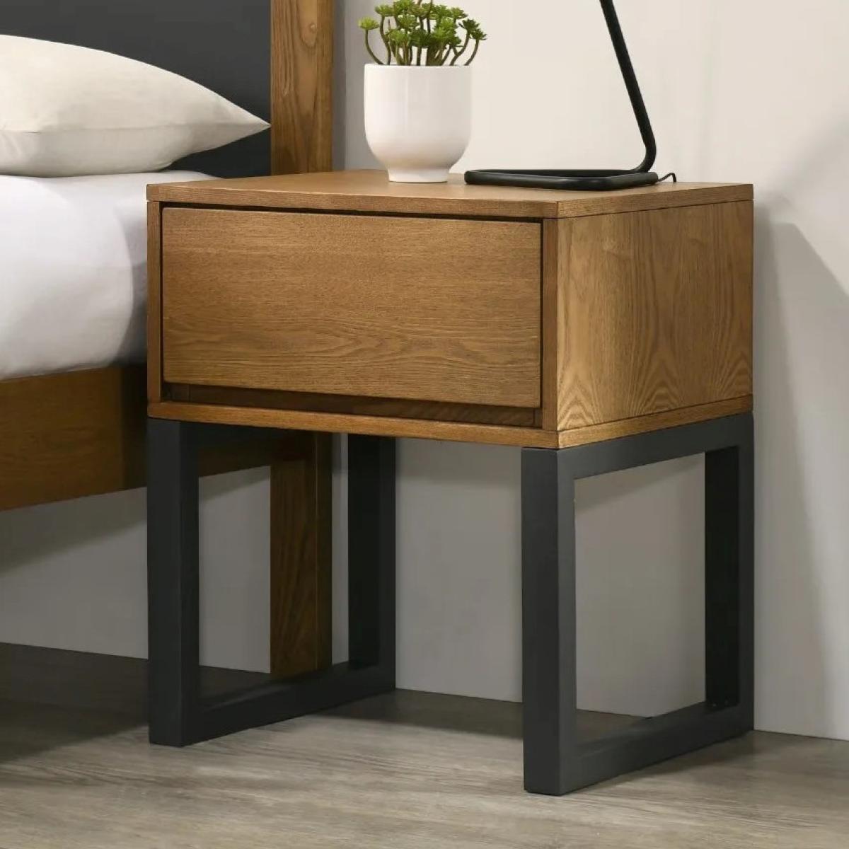 I love this bedside table for its sleek, modern design with a warm wooden finish that adds a touch of natural elegance to any space. It works well in both contemporary and Scandinavian interiors, offering a clean and uncluttered look. Practical styling tips include pairing it with minimalist bedding and simple lamps to highlight its understated appeal, or adding a decorative tray and a few personal accessories for a more personalised touch. Its compact size makes it ideal for smaller bedrooms, while the neutral timber blend ensures it complements a variety of colour schemes and furnishings.