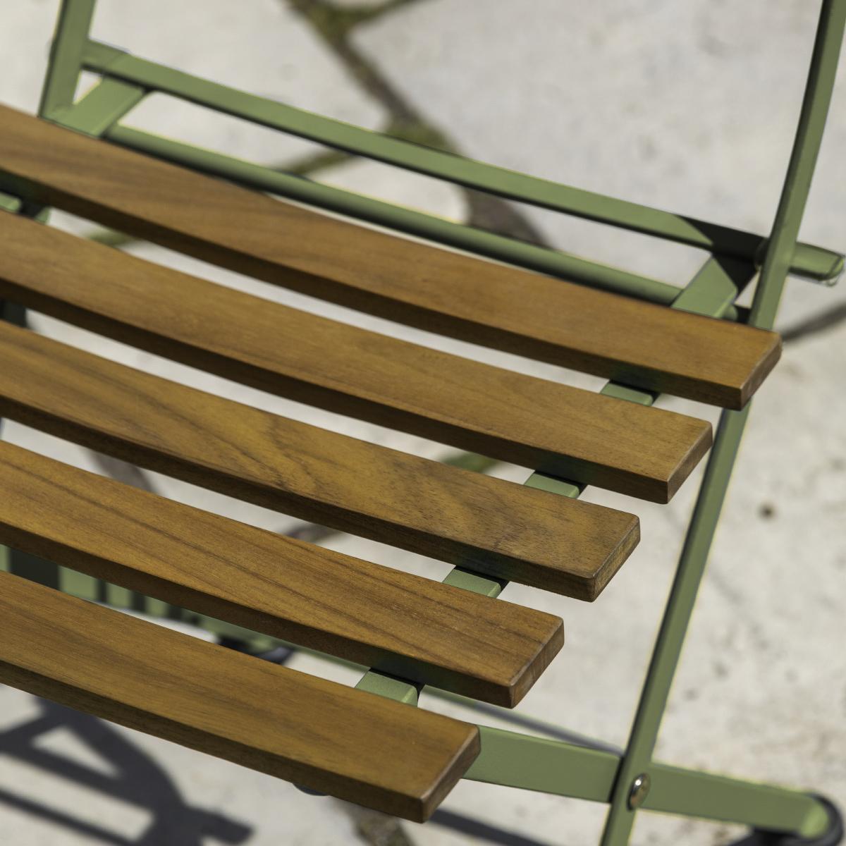 I’m a fan of the sage bistro set for its neat, fold-away design and soft green finish that won’t overpower a small space. It slips seamlessly into a compact kitchen nook, a sunlit conservatory or a narrow urban balcony. For styling, add slim cushions in terracotta or blush for a touch of warmth, and perch a simple lantern or small herb pot on the table. When it’s not in use, fold the chairs flat to maximise floor space, or ground the set with a natural-fibre rug and trailing plants for a relaxed al fresco corner.