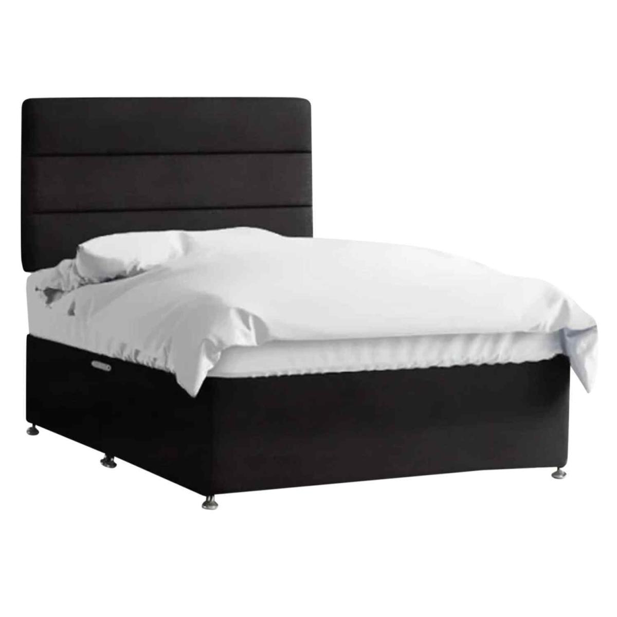 This beautiful Harmony Divan bed range is sure to leave a lasting impression in your bedroom. It has been handcrafted by skilled craftsmen in Britain using the finest materials. This bed comes available in 6 sizes and various fabrics and colours. Storage options included of having 2 drawers on either side of the base or to have no storage. The fabrics include chenille, plush, and crushed velvet. A stunning tall 26 inch headboard is included. A handcrafted headboard with a simple yet elegant design. Quality 1000 pocket sprung mattress with a rating of medium to firm is also included, with a depth of 10 inches this mattress has been designed to relieve pressure points across the body when leading to a much better night's sleep. It is also dust mite resistant and hypo allergenic. Natural fibre and wool fillings this mattress has the best quality materials for a great nights sleep.