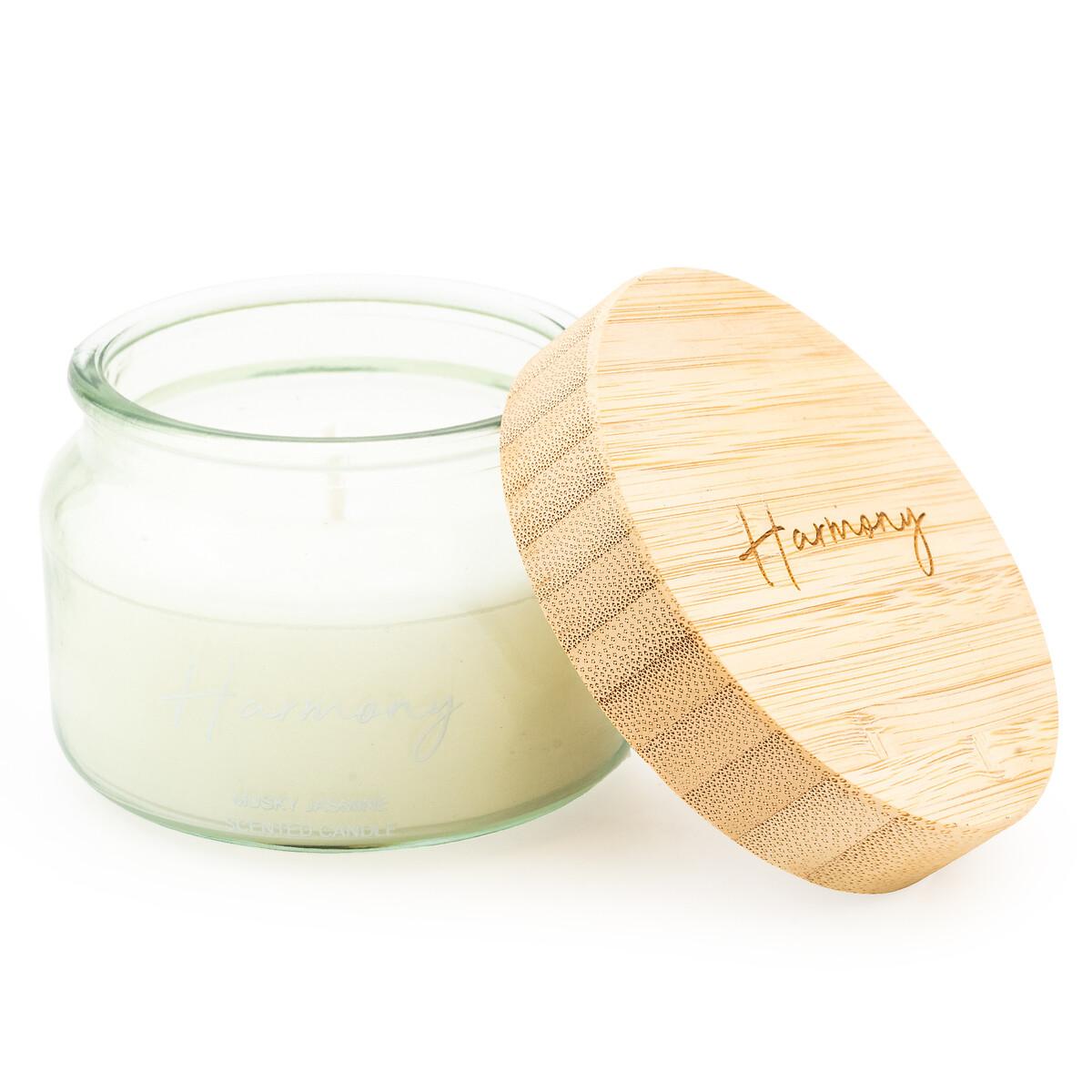 Introducing our exquisite Small Candle, adorned with a beautifully engraved bamboo lid featuring the word "Harmony," and infused with the enchanting scent of Pinky Sugar. Crafted to elevate any space with its luxurious presence and captivating aroma, this candle is a must-have for any home.