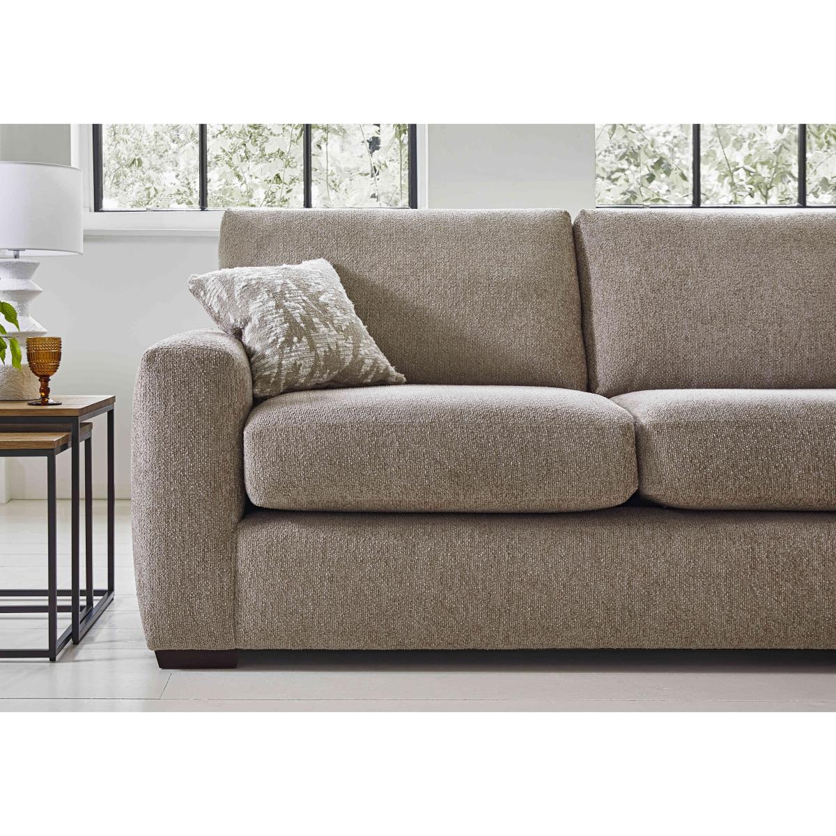 Ready for some serious lounging? Meet our Harper range of sofas, armchairs and sofa beds. The look is clean and modern with wide square-edged arms and deep seats which help fulfil this range's commitment to comfort. Seats and backs are sprung and seat cushioning is high-quality foam with a five-year plumpness guarantee. Back cushions are filled with squishier fibre – or feather if you opt for one of the range’s pillow back sofas. Together they promise that perfect balance of softness and support. Beautifully upholstered in a choice of fabrics including a lovely boucle-effect chenille, these corner sofas, sofas, chairs and footstools are entirely handcrafted in the UK and exclusively available at Furniture Village. This stylish modern three-seater sofa is that rare thing – a sofa bed that’s as comfy a bed as it is a sofa. Handmade for Furniture Village and in a choice of upholstery fabrics. Why you’ll love it Relaxed modern style invites some serious lounging. Wide arms, deep seats and fabulous cushioning for top-to-toe comfort. Sprung seats and back for even weight distribution and all-over support. Foam seat cushioning comes with a 5-year plumpness guarantee. Simple 2-fold sofa bed mechanism is so easy to use. Deluxe sprung mattress is about the same size as a double bed. 2 feather-filled scatter cushions included. High-quality craftsmanship with a sturdy wooden frame. Upholstery fabrics include soft, boucle-effect chenille. Wood feet in a choice of finishes. Handmade in the UK. A Furniture Village exclusive. This 3-seater classic back sofa bed is part of our Harper range. What you need to know Medium comfort level. Seat suspension: spring. Seat cushioning: Duo Flex foam. Cushions are reversible. Back suspension: spring. Back cushioning: fibre. Cushions are reversible. Mattress: 132 cm wide sprung mattress. Any more info about the mattress type to include here? Clean regularly using a soft brush or vacuum with the curtain attachment. Deal with any spills promptly. Professional cleaning advised for oil- and grease-based stains. Please read our upholstery care guide for more advice.