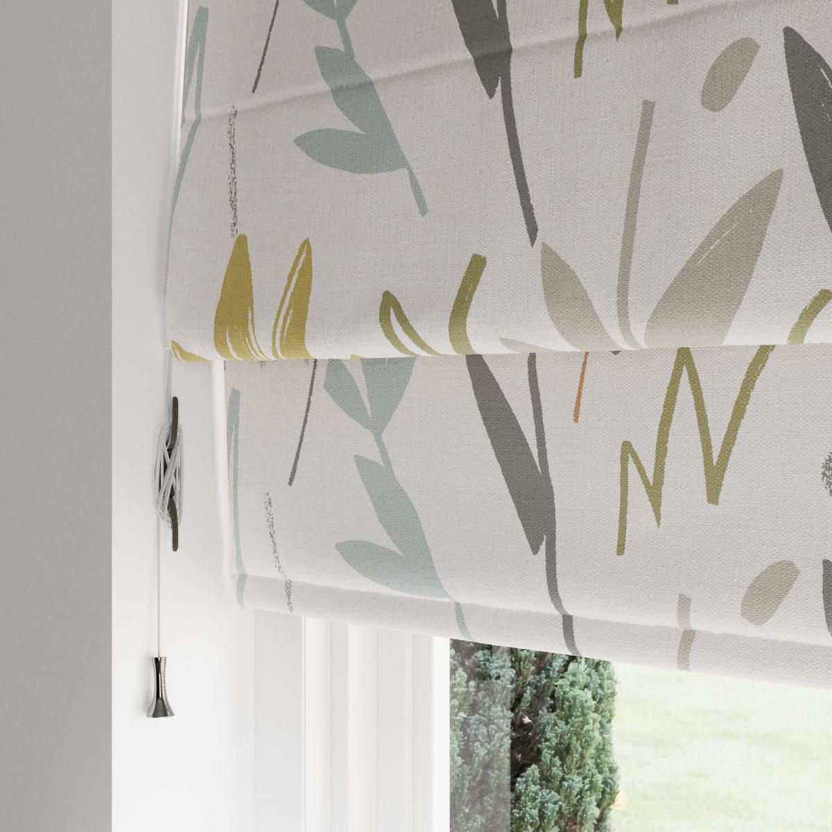 Featuring a modern abstract floral design, the Harper roman blind crafted from recycled polyester is blackout lined to reduce unwanted external light. Suitable for any room in the house, it is available in a range of sizes, and supplied with all fixings included for easy installation. At the back of your Roman Blind, the cords attach to the fabric using clips. We take the safety and well-being of children very seriously so these clips also double up as a child-safety feature. They will detach when they are put under too much strain to prevent the risk of strangulation. If they become detached accidentally during use of your blind, these can be easily clipped back into place to allow normal operation of the cords.