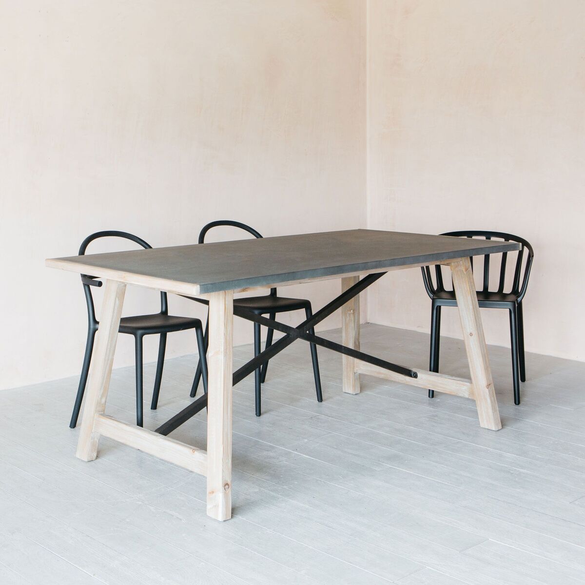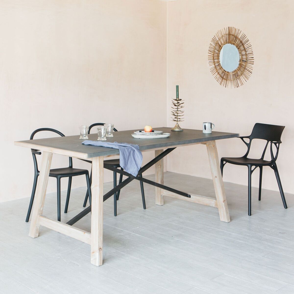 I love the raw, minimalist feel of this table, making it a versatile piece that can suit a variety of interiors-from rustic, Scandi-inspired spaces to more modern, pared-back schemes. Its sturdy construction paired with contrasting black supports lends a sense of stability while keeping the look streamlined. A great practical tip is to keep styling simple on the surface-think neutral or textured place mats-and use colour or accessories in the surrounding space to add personality. It works particularly well with timber or upholstered chairs and can effortlessly adapt as a central piece for casual family meals or more formal entertaining.