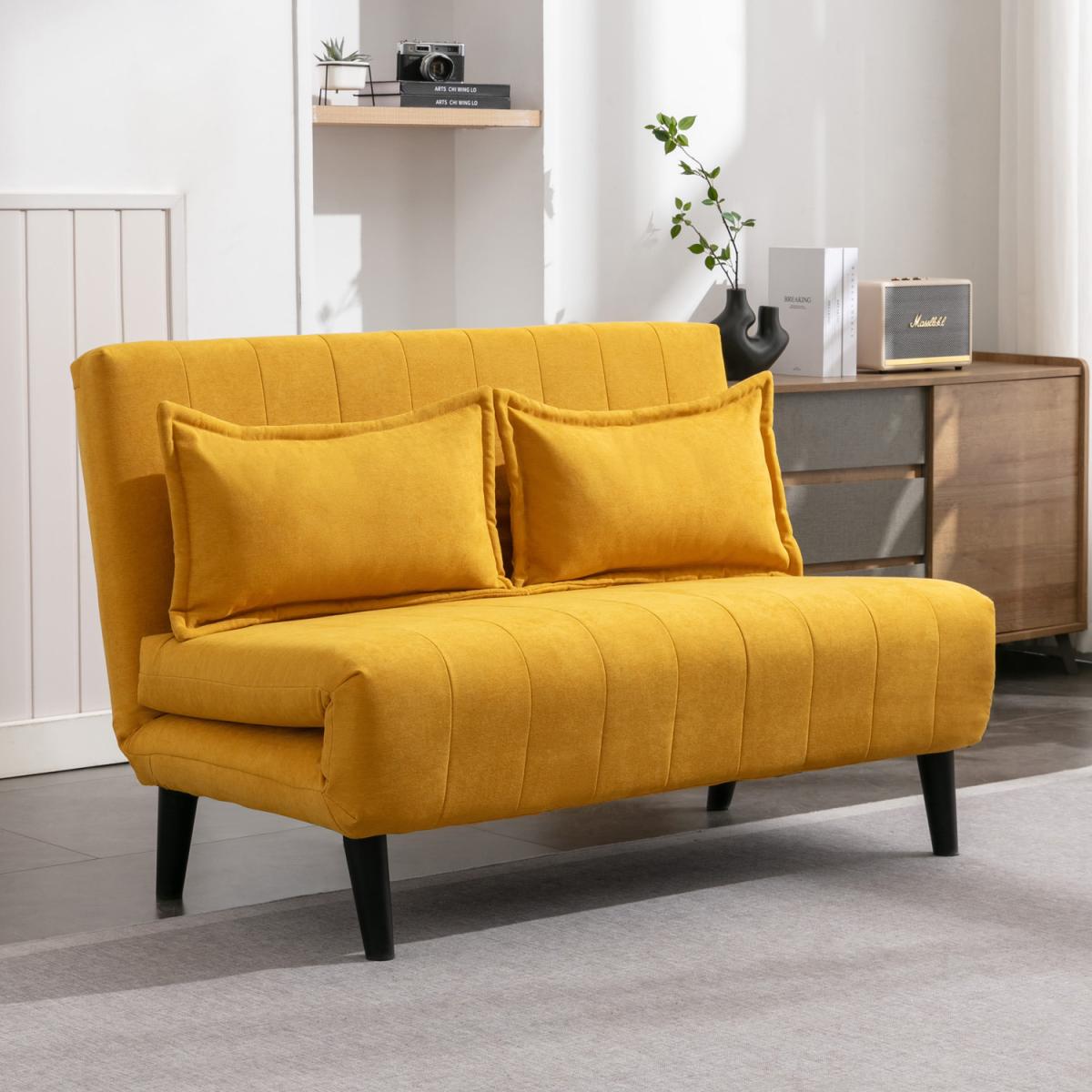 This versatile piece of furniture is designed to effortlessly transform your living space into a cosy retreat, providing comfortable seating during the day and a restful sleeping area at night. Create a beautiful bed within seconds! Simply fold out the seat, revealing a spacious sleeping area for guests or lounging. The backrest has a clic clac mechanism that is quick and effortless, providing a flat back for a perfect sleeping position. The Harper comes with removable cushions and is upholstered in gorgeous linen. With foam filled backrests, this Sofa Bed is perfect for movie nights and for having guests staying the night. Available as a 1 or 2-Seater in 4 gorgeous colours Blue, Charcoal, Grey and Mustard. Upgrade your living space with the Harper today.