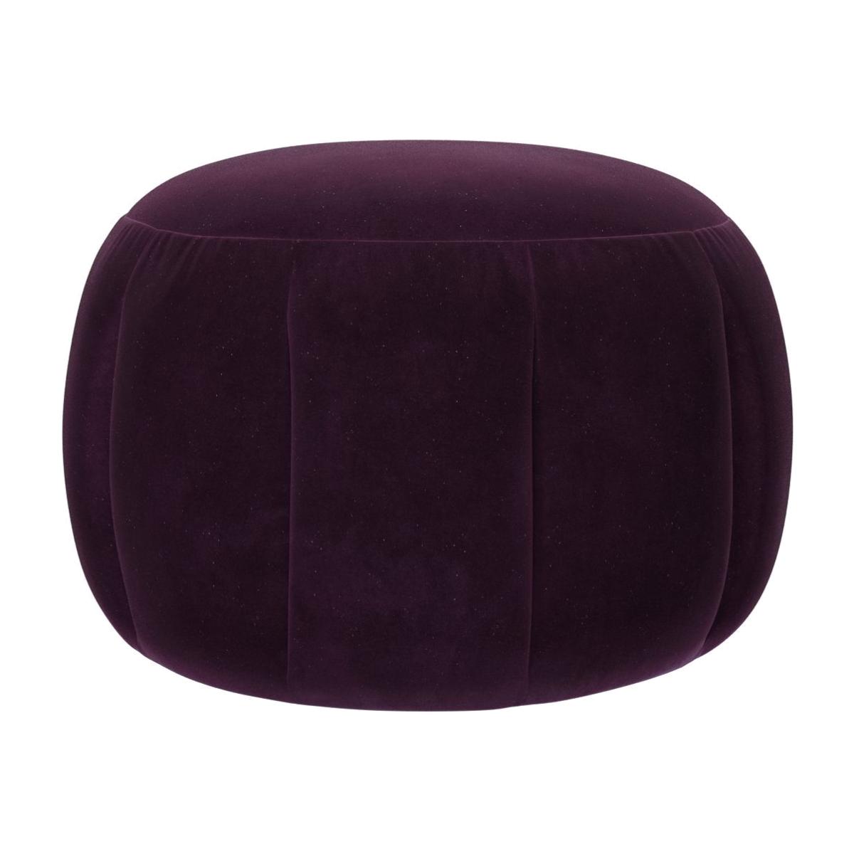 I love this little footstool for its rich Damson shade and luxurious velvet texture-it's a simple way to introduce colour and sophistication into a space. Its round shape makes it versatile and perfect for both contemporary and classic interiors; it works especially well in cosy living rooms or placed alongside a statement sofa to add extra seating or a multi-functional footrest. To style it effectively, consider pairing it with soft-toned cushions or layered with textured throws for a layered, inviting look. Its compact form makes it ideal for smaller rooms or flats, offering both practicality and style without overwhelming the space.