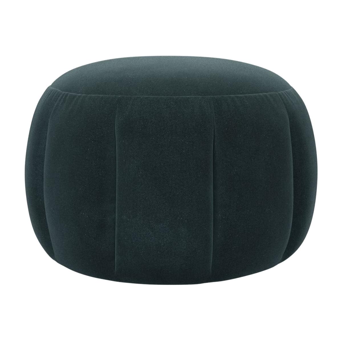 Harper Round Footstool in Deep Forest Aquaclean Clever Velvet