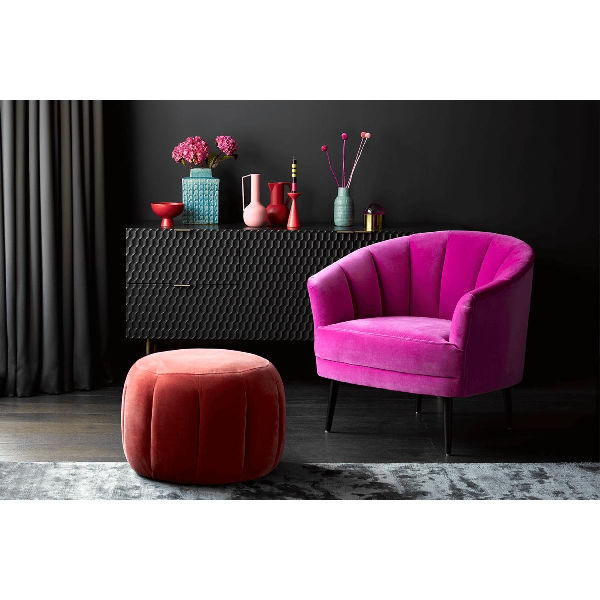 I love this pouffe for its bold colour and lush velvet texture, which adds a fabulous pop of colour to both contemporary and eclectic interiors. The pomegranate hue is vibrant enough to stand out but versatile enough to work with neutral palettes or those with warmer tones. It’s a great way to introduce extra seating or a comfy footrest without cluttering a space. For styling tips, try grouping it with a mix of textured cushions or placing it alongside a neutral sofa to make the colour really sing. It’s practical too-easy to move around and perfect for creating extra relaxed seating in living rooms or bedrooms.