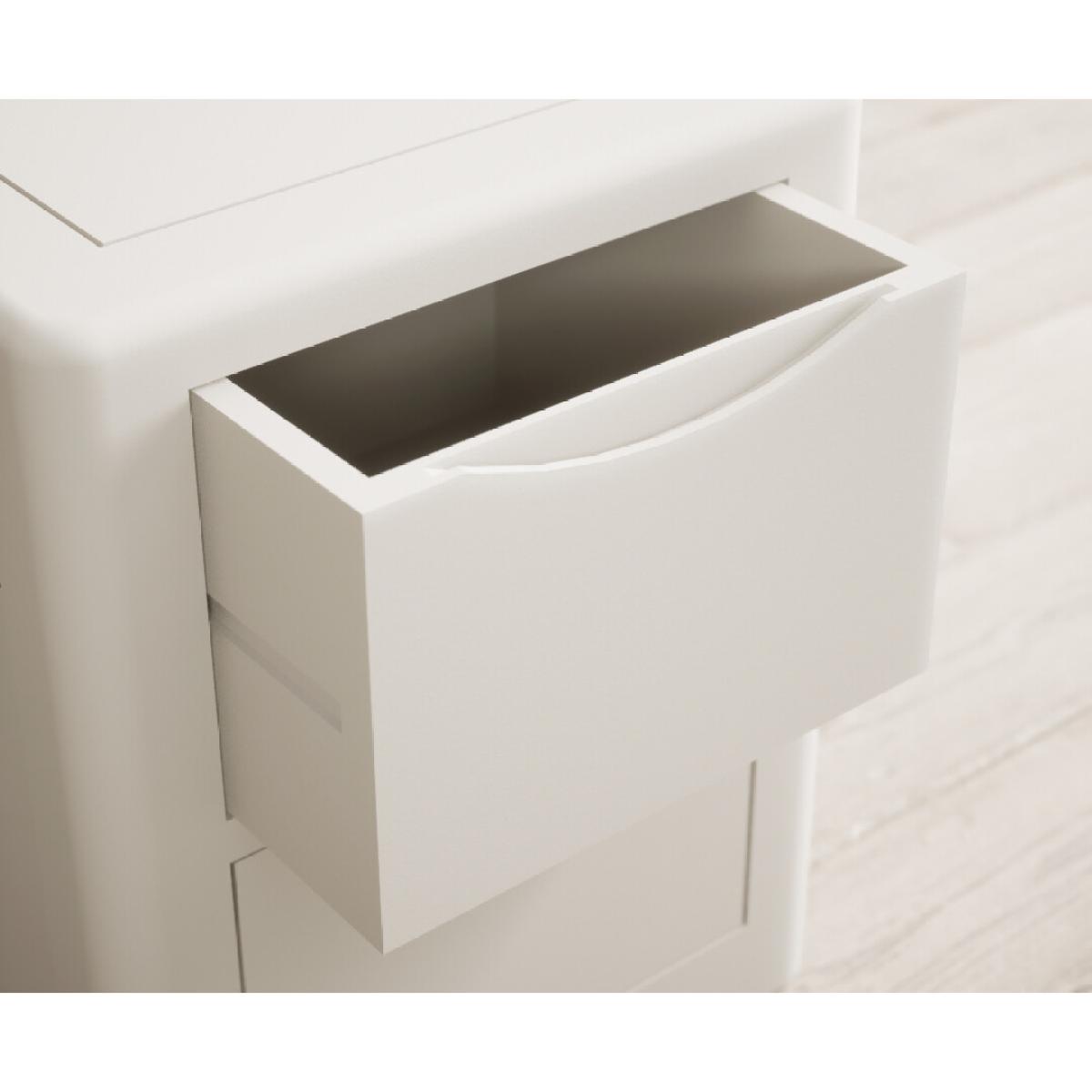 I really like this bedside table because of its clean, minimalist design and soft white finish, which makes it versatile enough to suit both modern and classic interiors. It works particularly well in neutral or muted colour schemes where it can add a touch of brightness without overpowering the space. Practical styling tips include keeping the top surface uncluttered with a sleek lamp or a small plant, while utilising the drawers for essentials to keep the area looking tidy. It’s a great choice if you're aiming for a calm, organised bedroom, but it can also be styled with contrasting textures or colours for a more eclectic look.