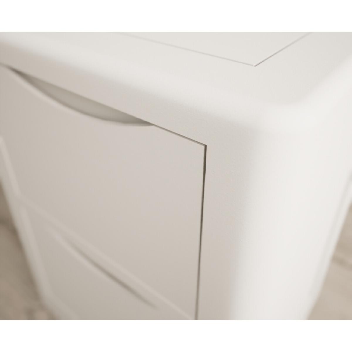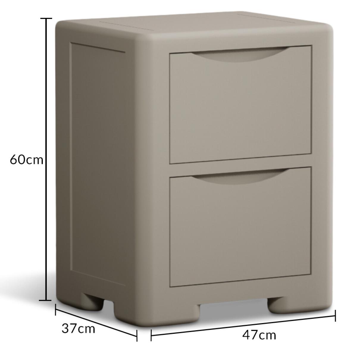 The Harper Soft White 2 Drawer Bedside Chest is stylish and durable, with modern curved edges and a natural finish and 2 drawers finished with inbuilt recessed handles.