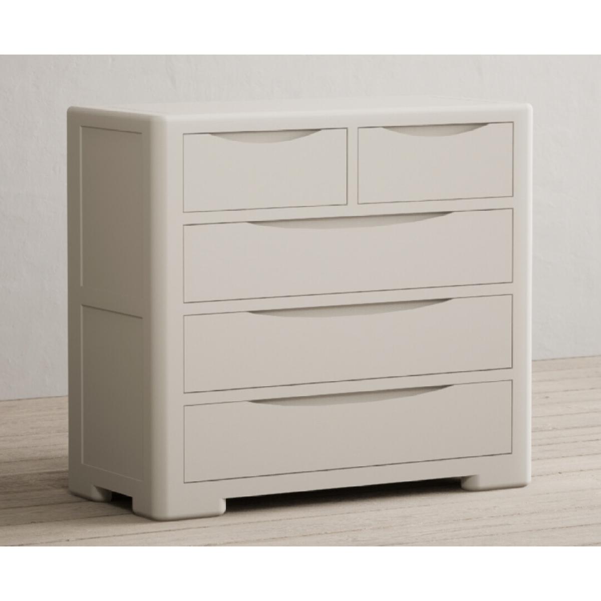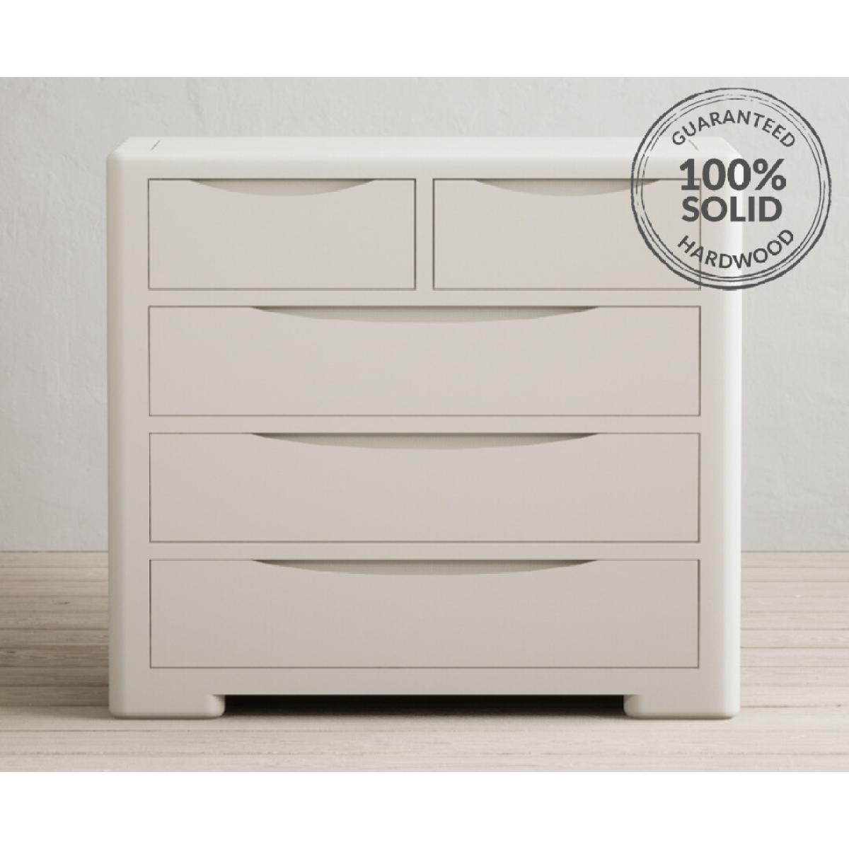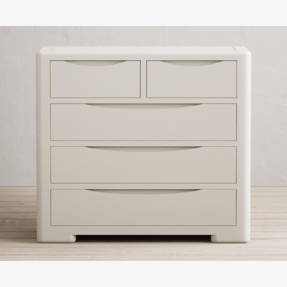 The Harper Soft White 2 Over 3 Chest of Drawers is a modern chest of drawers with two Dovetail upper drawers and three lower drawers complete with recessed handles.