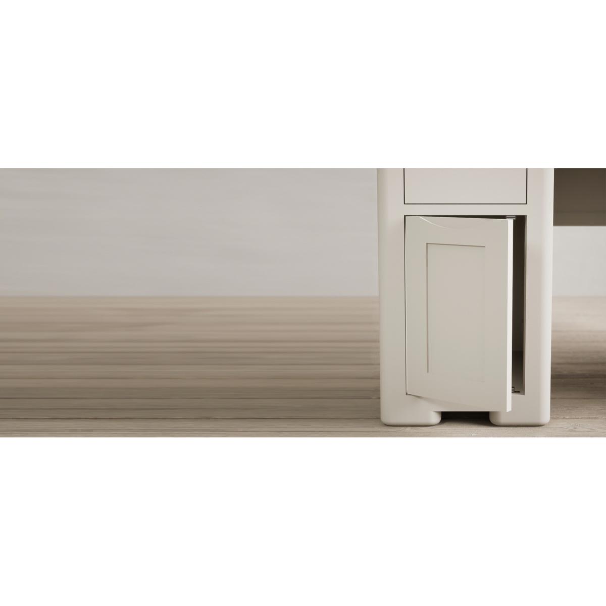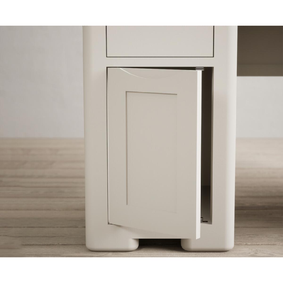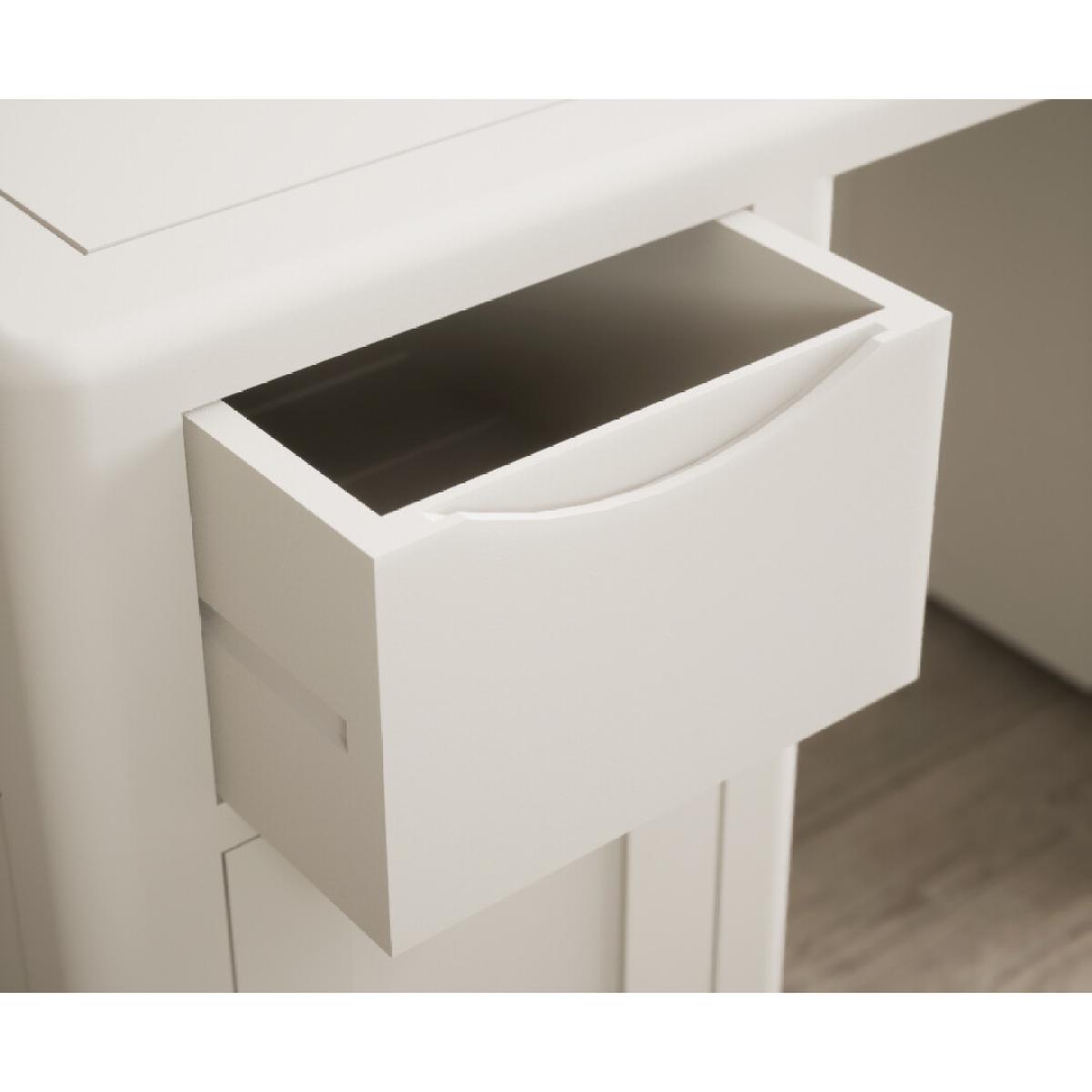 The Harper Soft White Computer Desk features stylish curved edges and offers handy storage with two cupboards and two Dovetail drawers.