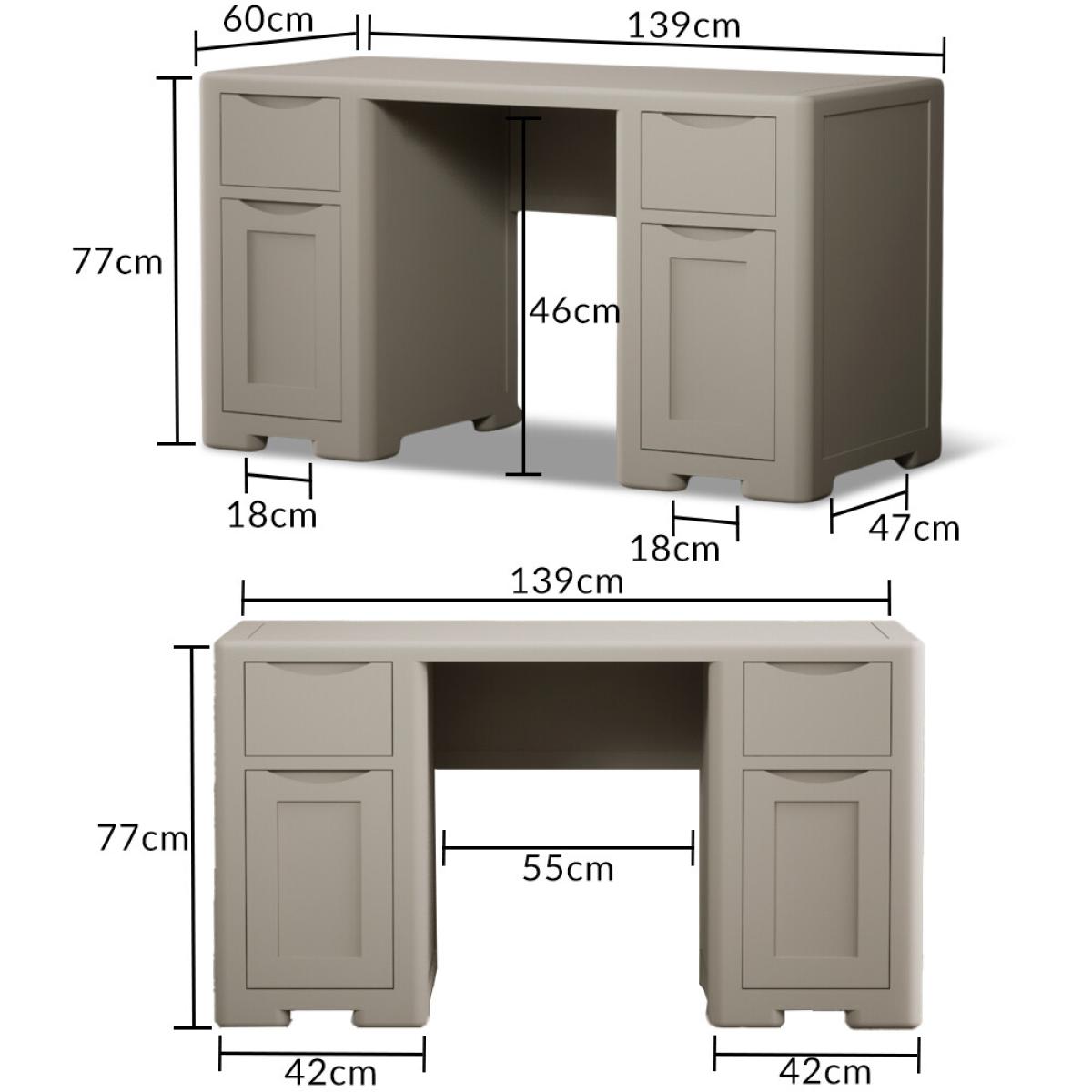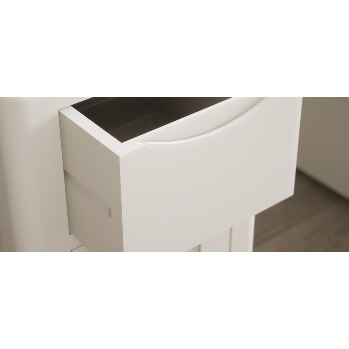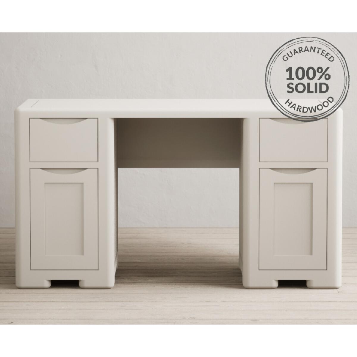 The Harper Soft White Computer Desk features stylish curved edges and offers handy storage with two cupboards and two Dovetail drawers.