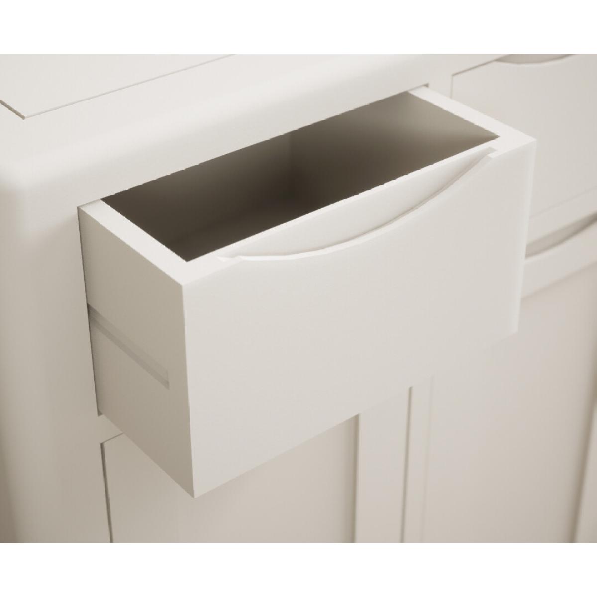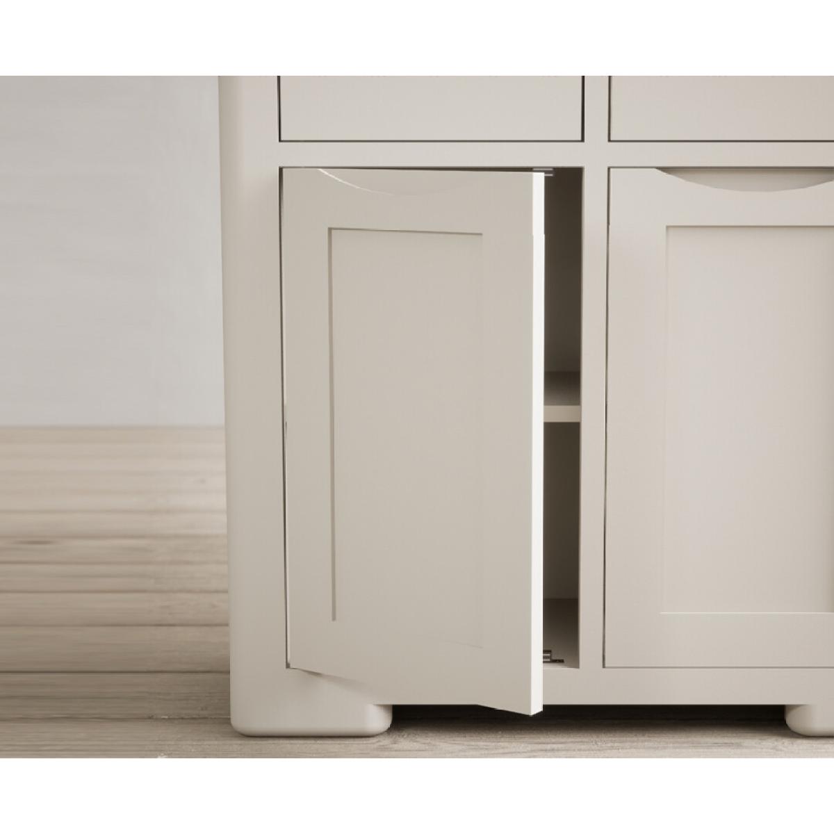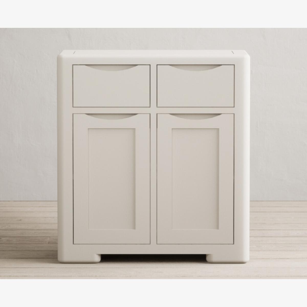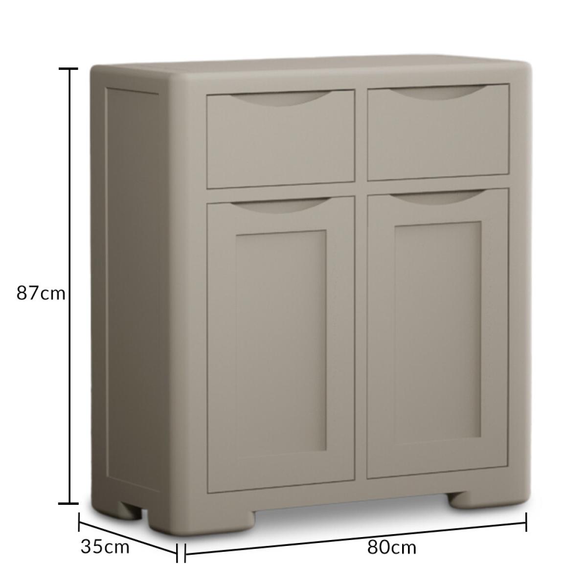 The Harper Soft White hallway sideboard features plenty of storage space with two Dovetail drawers and two cupboards with recessed handles.