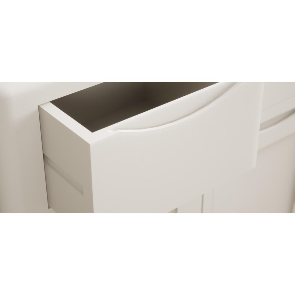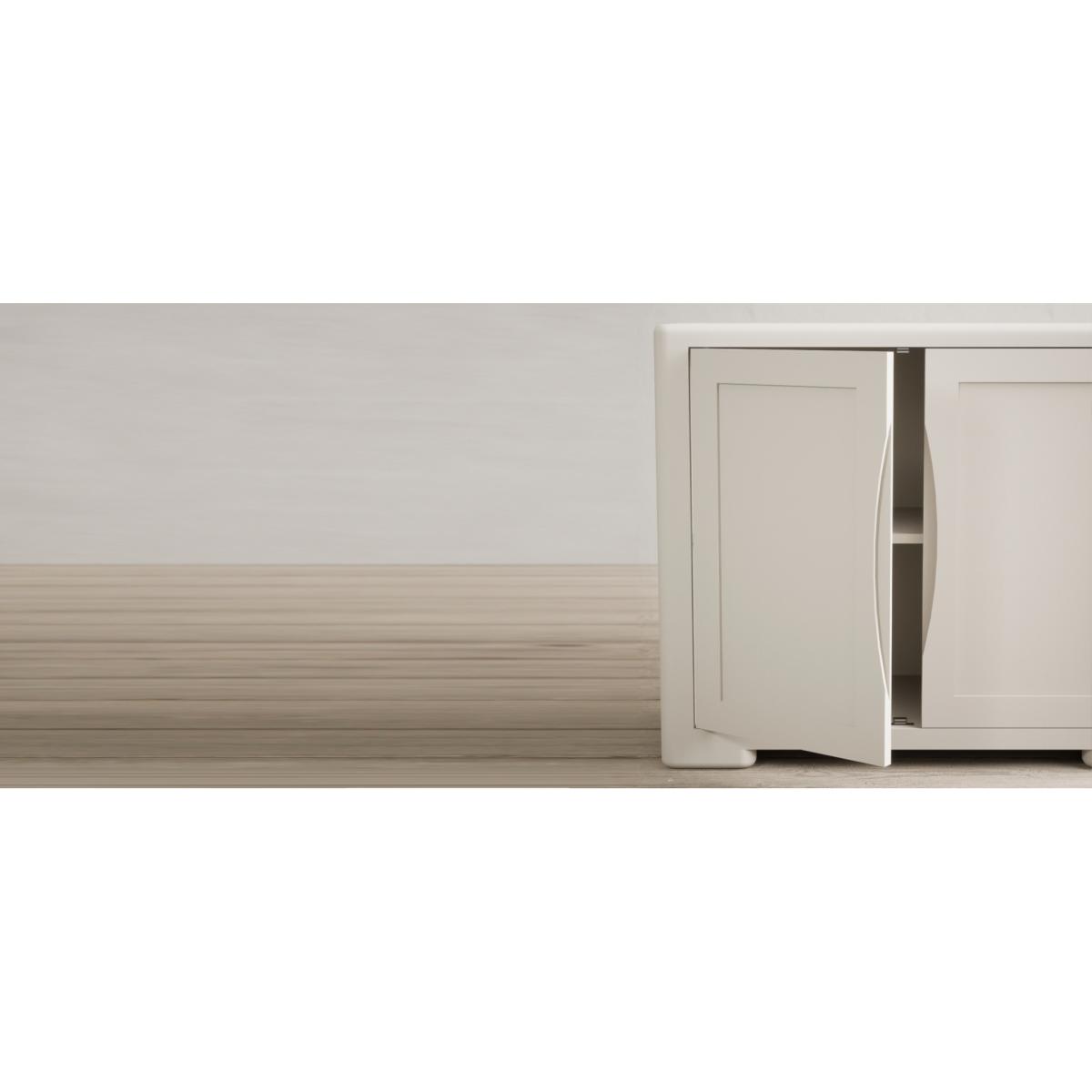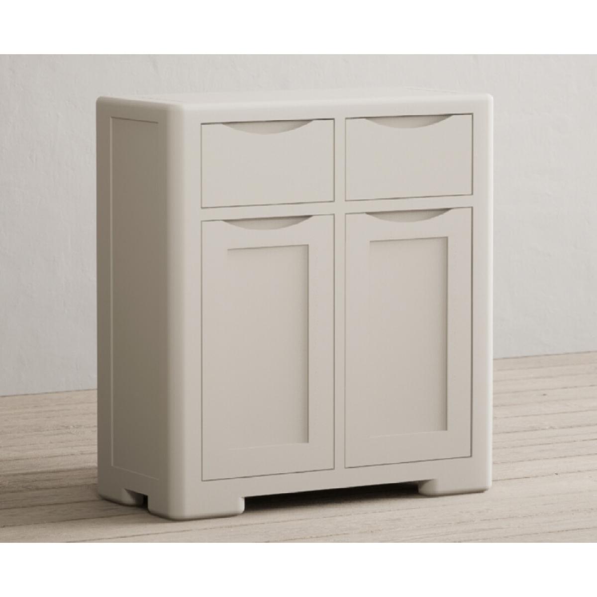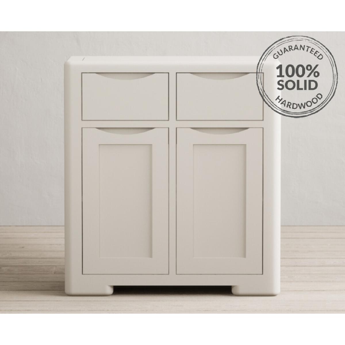 The Harper Soft White hallway sideboard features plenty of storage space with two Dovetail drawers and two cupboards with recessed handles.