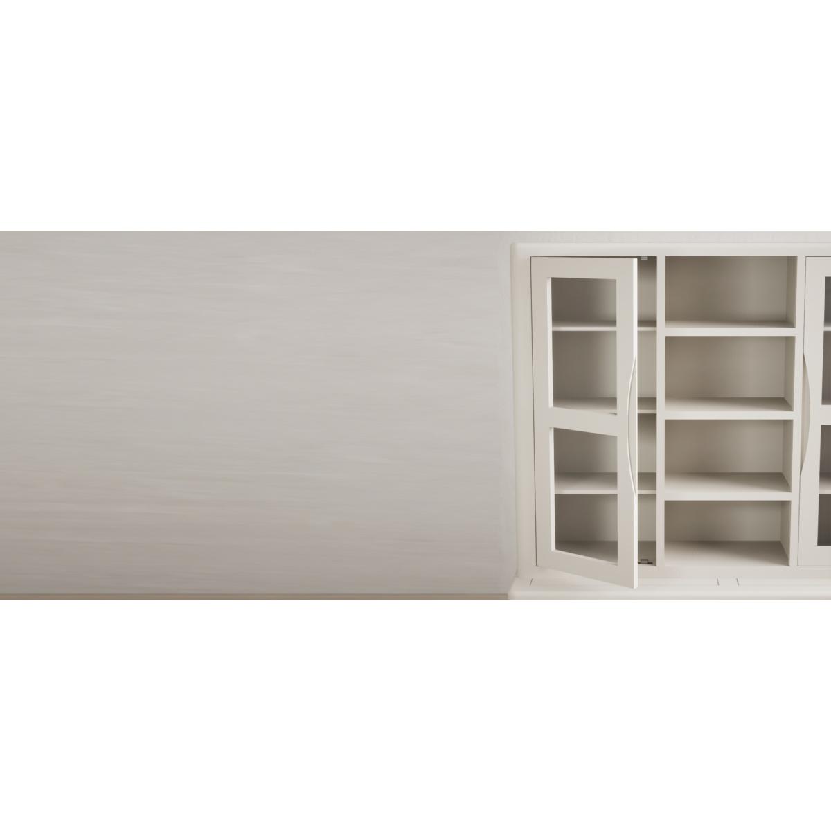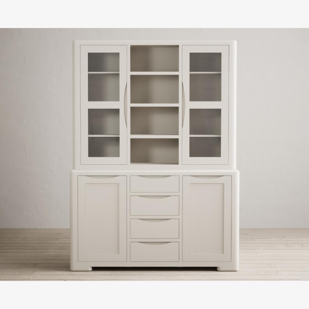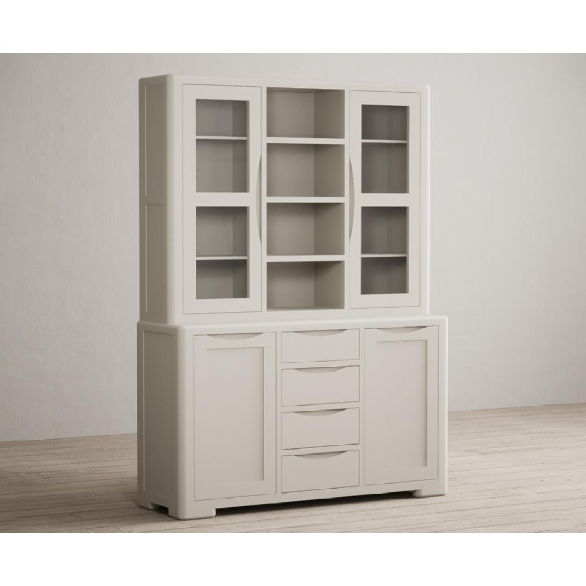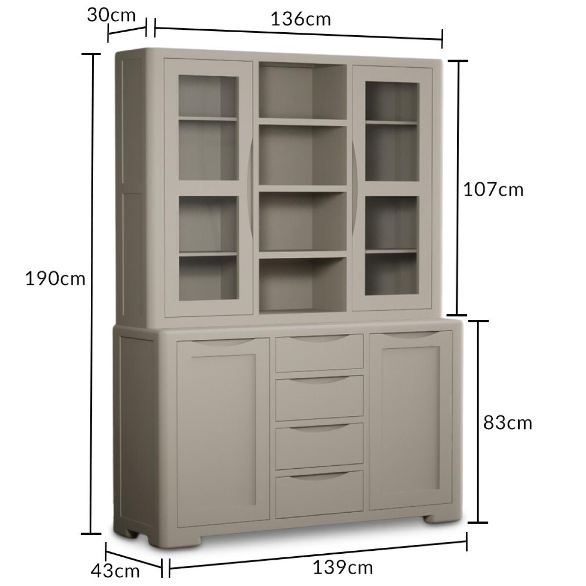 Designed to match the Harper large sideboard, the Harper Soft White dresser top features three shelves and two cupboards with tempered glass doors.
