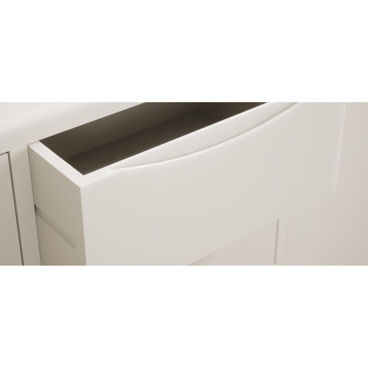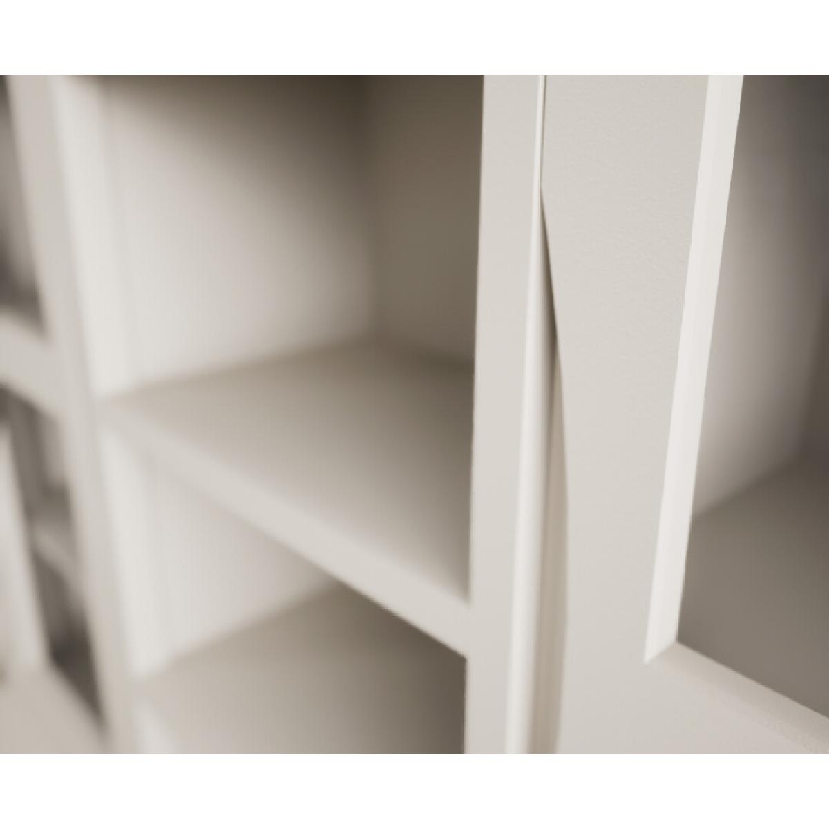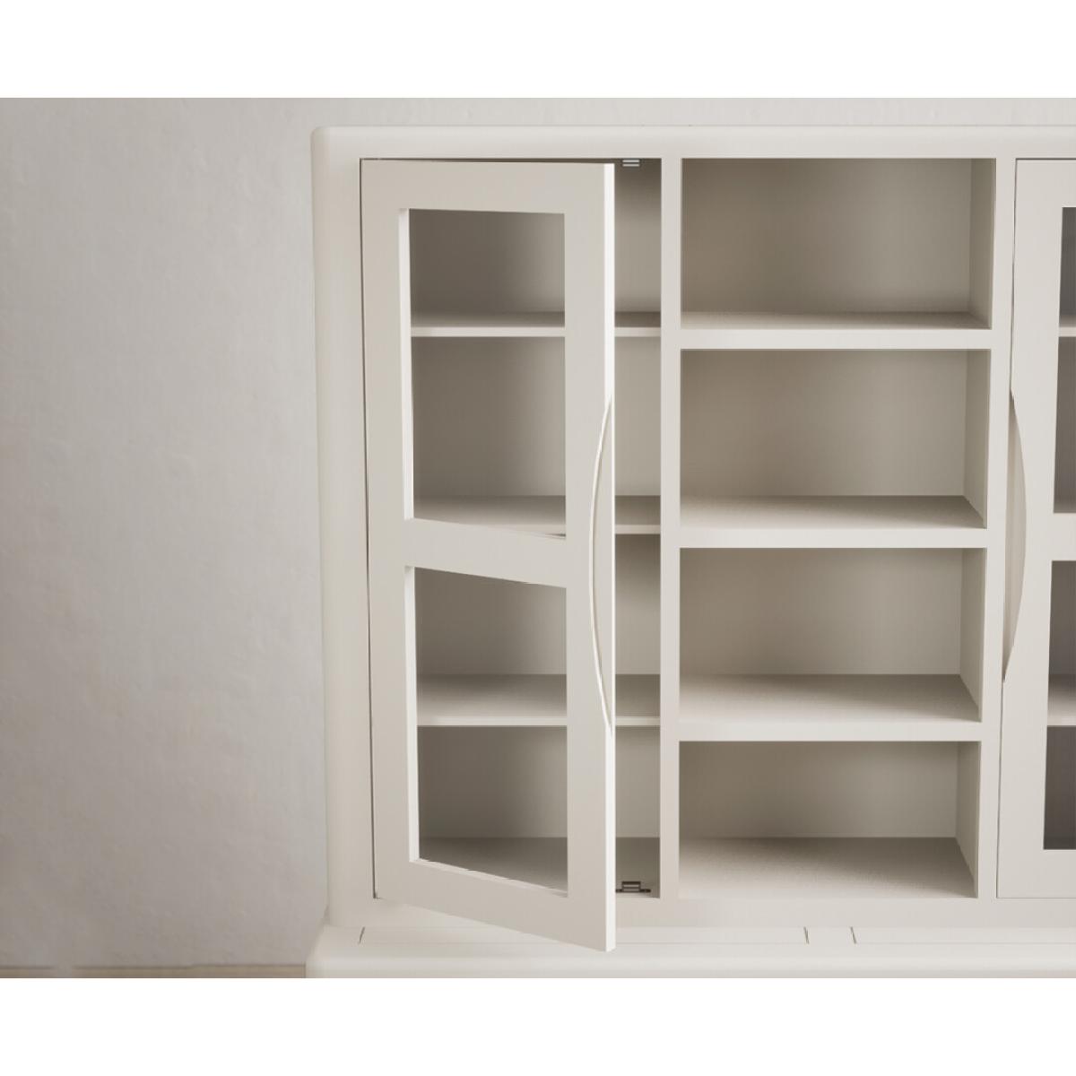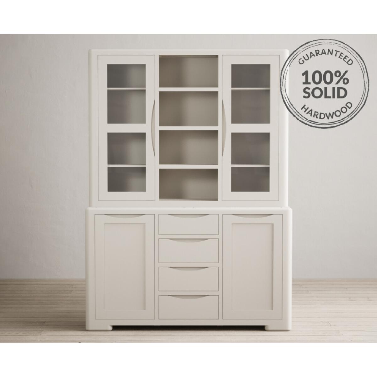 Designed to match the Harper large sideboard, the Harper Soft White dresser top features three shelves and two cupboards with tempered glass doors.