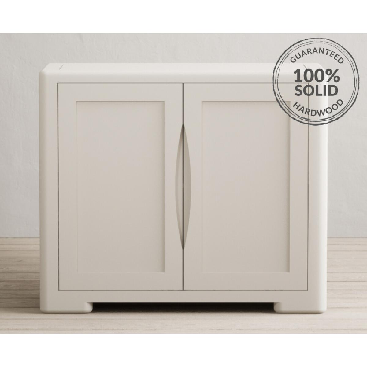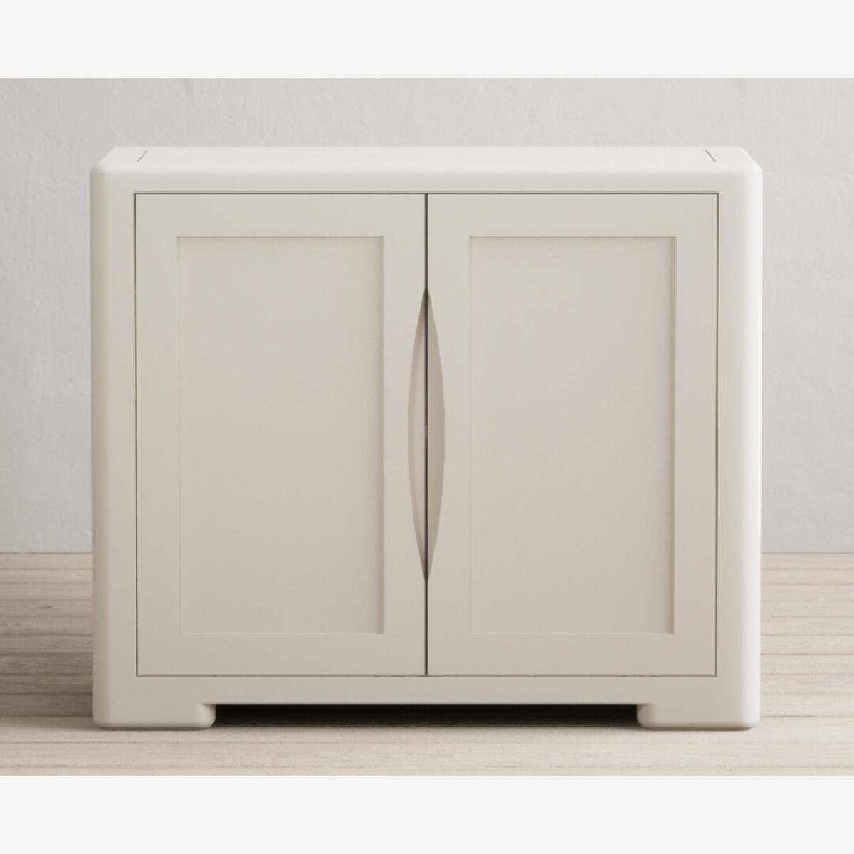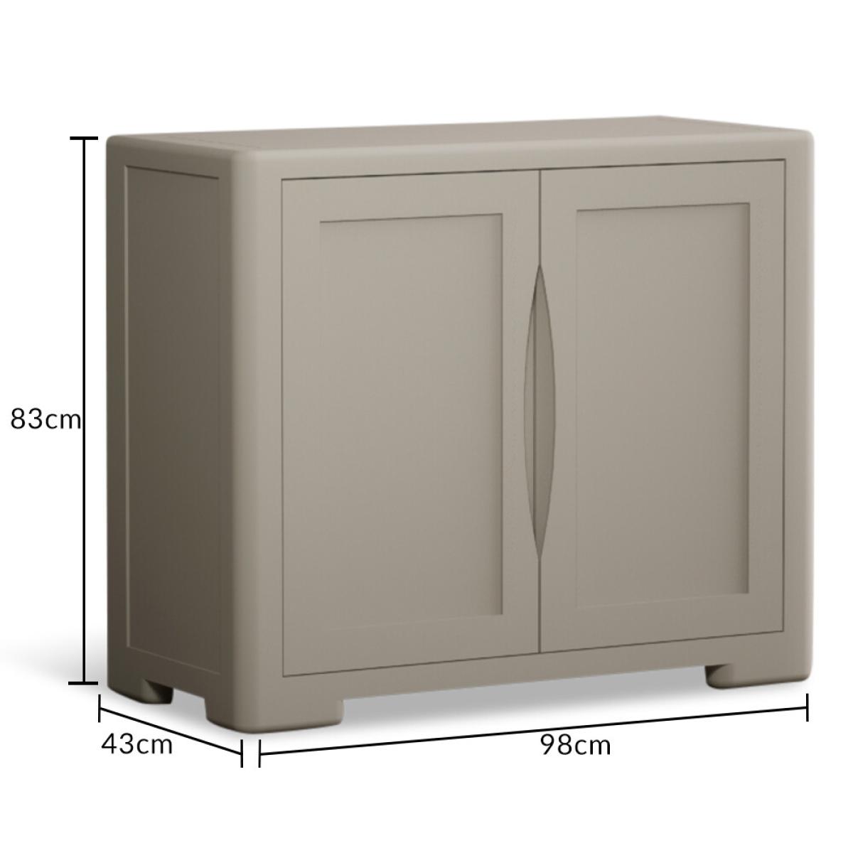 Perfect for smaller spaces, the Harper Soft White small sideboard features a two door design, with recessed handles and plenty of storage space.