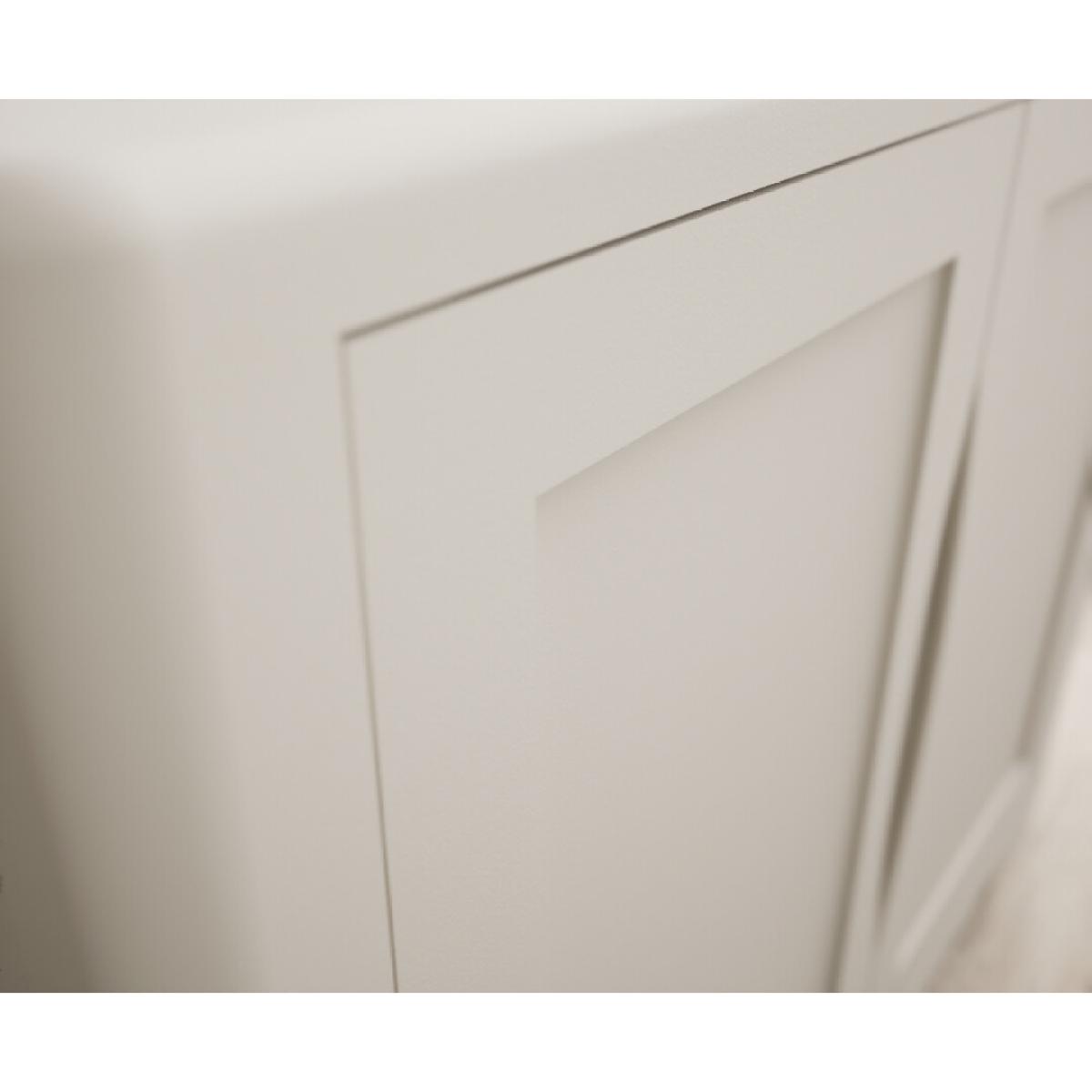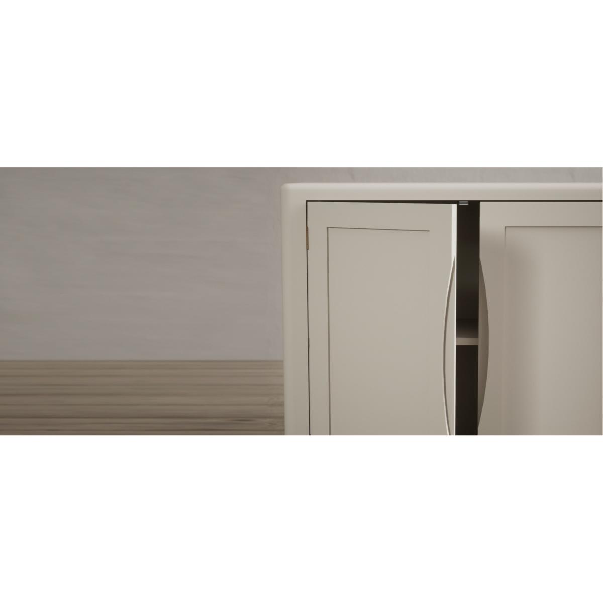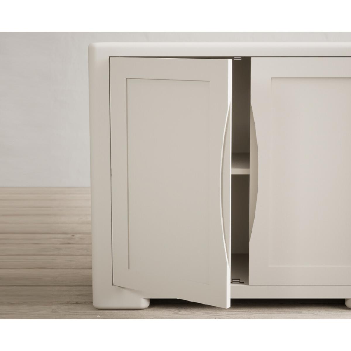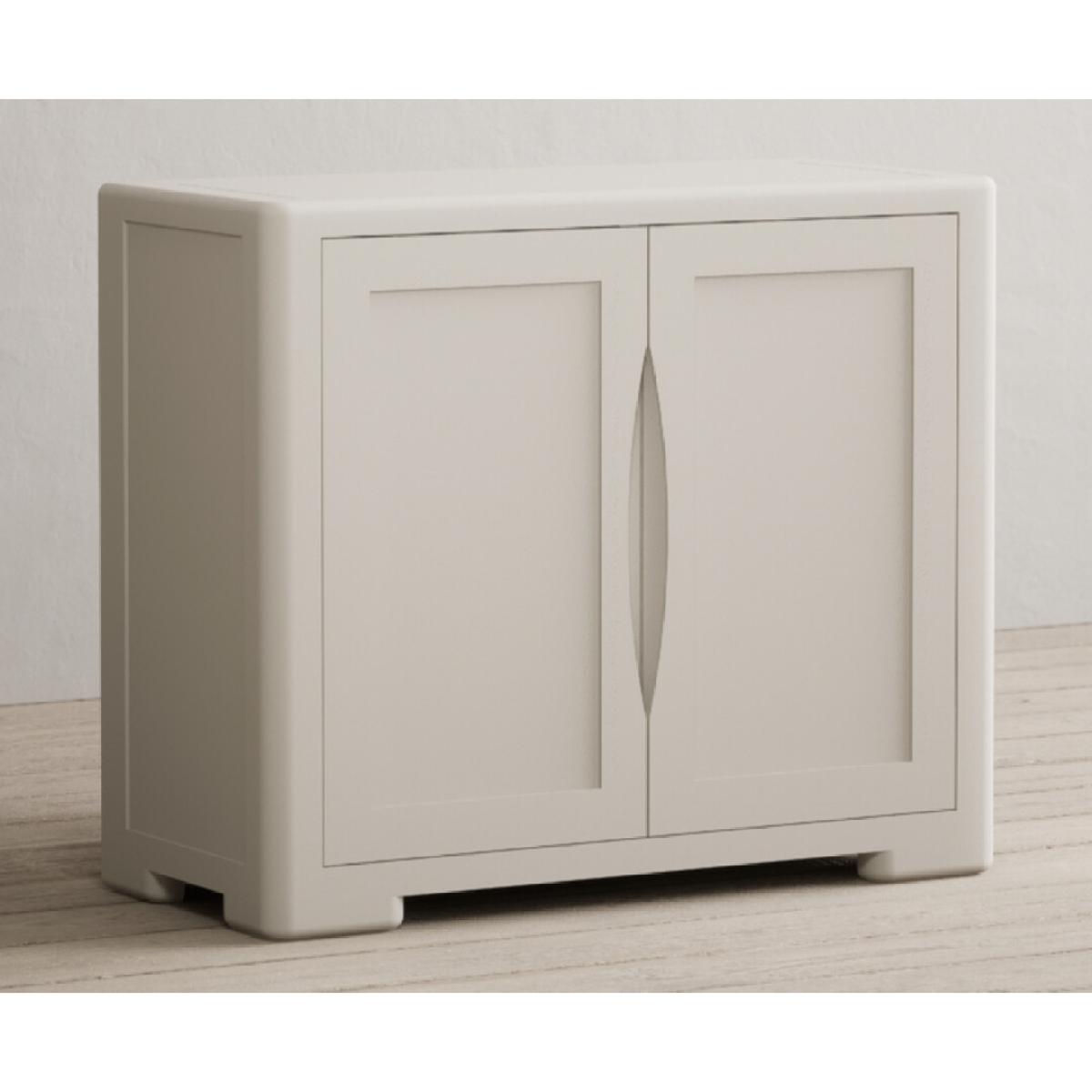 Perfect for smaller spaces, the Harper Soft White small sideboard features a two door design, with recessed handles and plenty of storage space.
