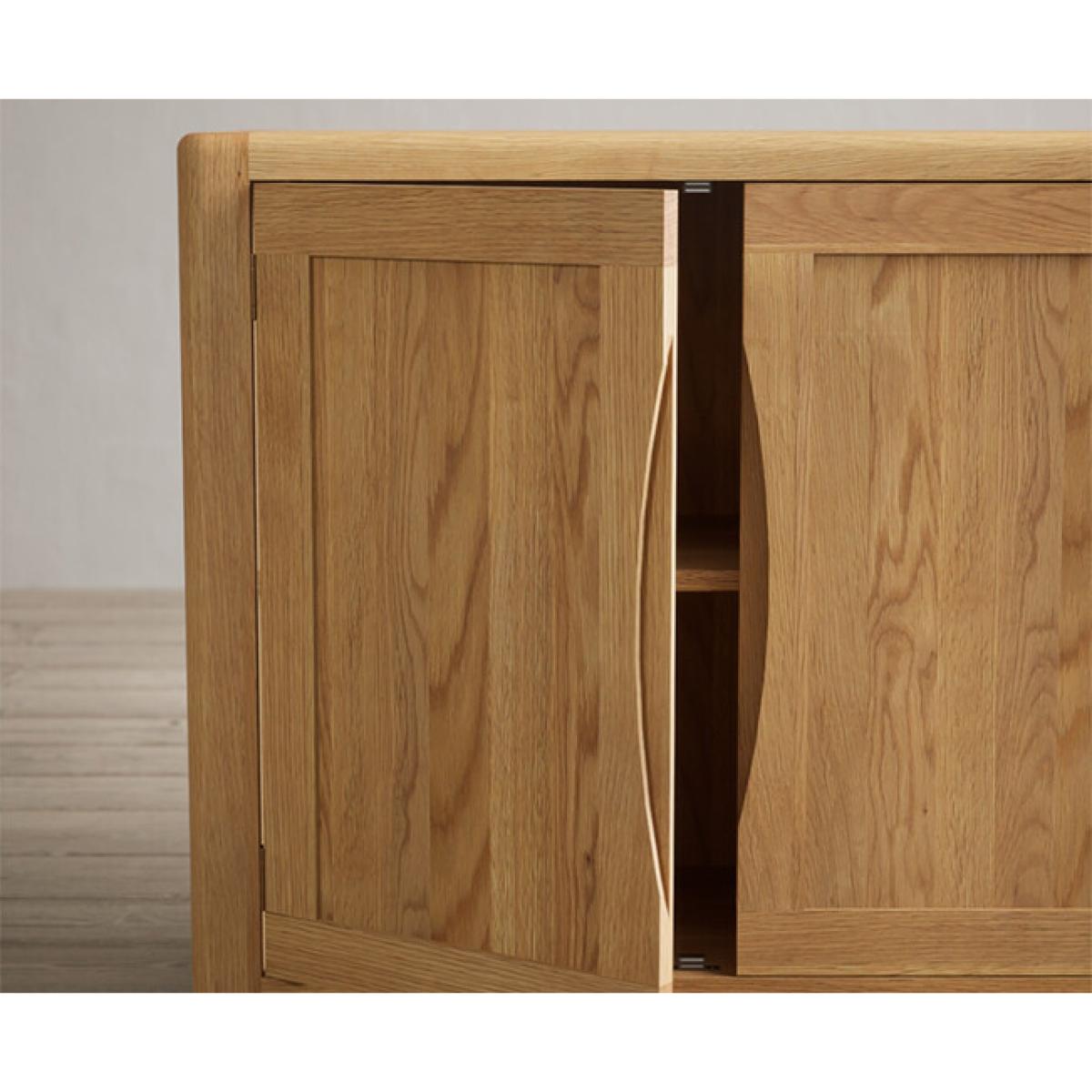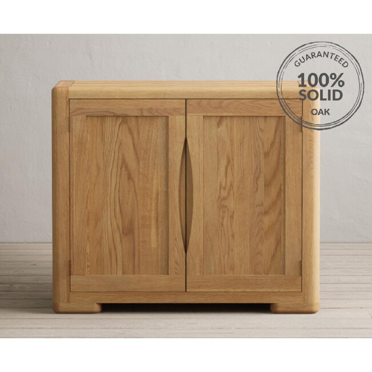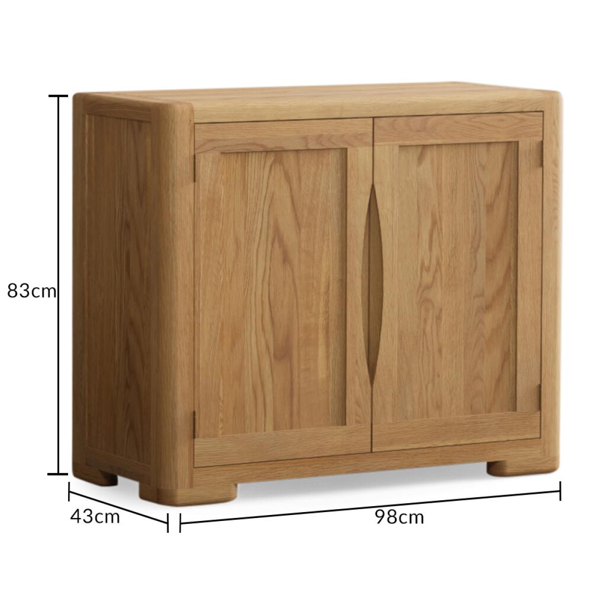 Perfect for smaller spaces, the Harper solid oak small sideboard features a two door design, with recessed handles and plenty of storage space.