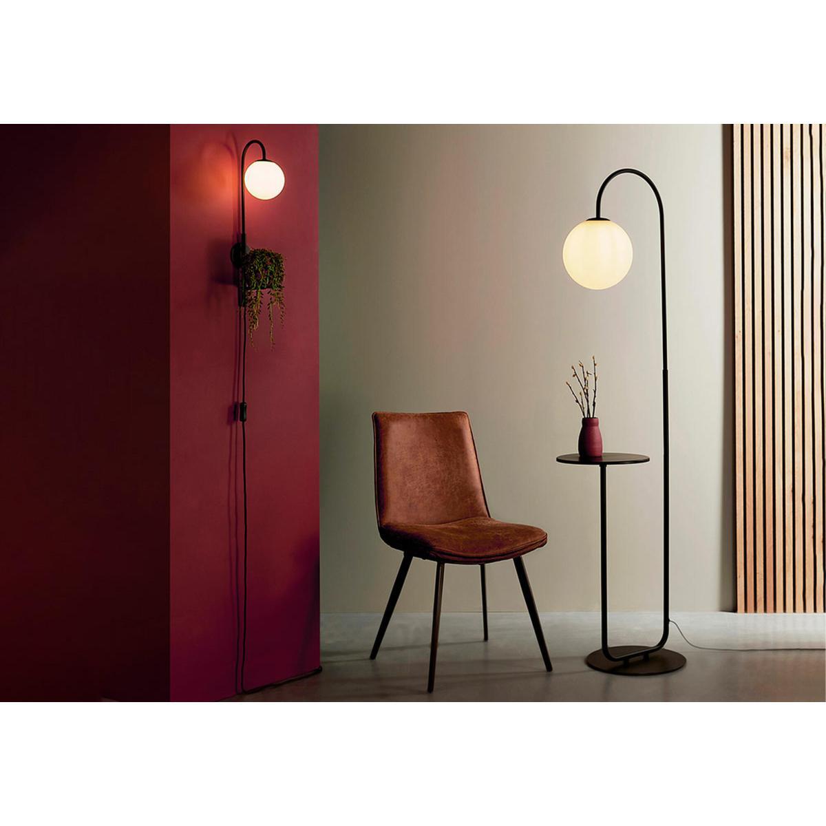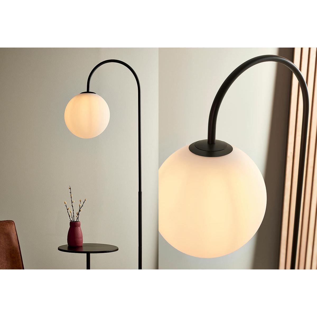 Sleek, sophisticated and structured, the Harriet floor lamp is where functionality meets modern design. Crisp black metalwork is moulded into a geometric frame which holds a round opal glass light on one end, and on the other end holds a tiny tabletop for coffees, cocktails, books or any other treasures that deserve a personal spotlight in your home. This contemporary piece comes with a matching wall light, but feel free to mix and match this lamp with products from the Harlee range too.