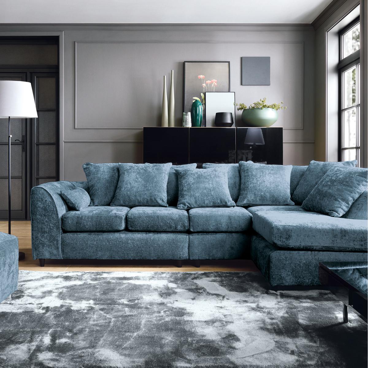 Upholstered in a sumptuous crushed chenille - a fuzzy cotton yarn of fabric that has a pile protruding around the weave creating a caterpillar look. This luxuriously comfortable sofa features foam-filled seats, whilst the corner chaise section is the perfect place to put your feet up. Complete with eight cosy fibre-filled scatter cushions, this stunning medium-sized corner sofa would be a great addition to any modern home. Bring a touch of glamour to your home with the Harriet collection. All sections in the modular Harriet sofa series can be used freestanding or put together into exactly the combination you need.