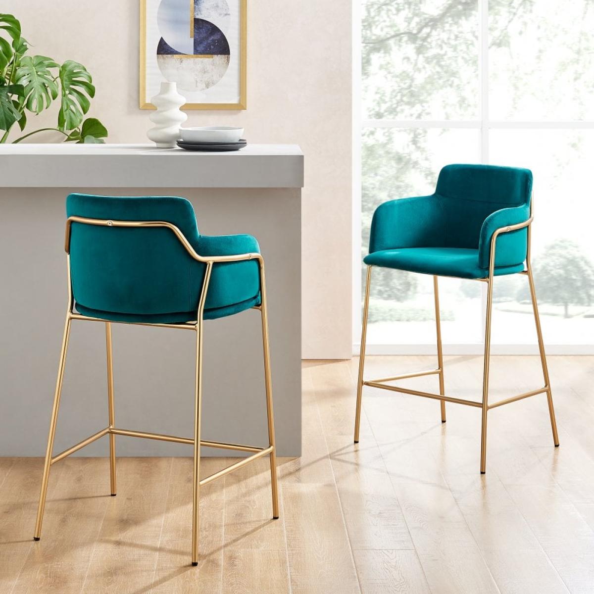 Harriet Kitchen Stool, Teal Recycled Velvet