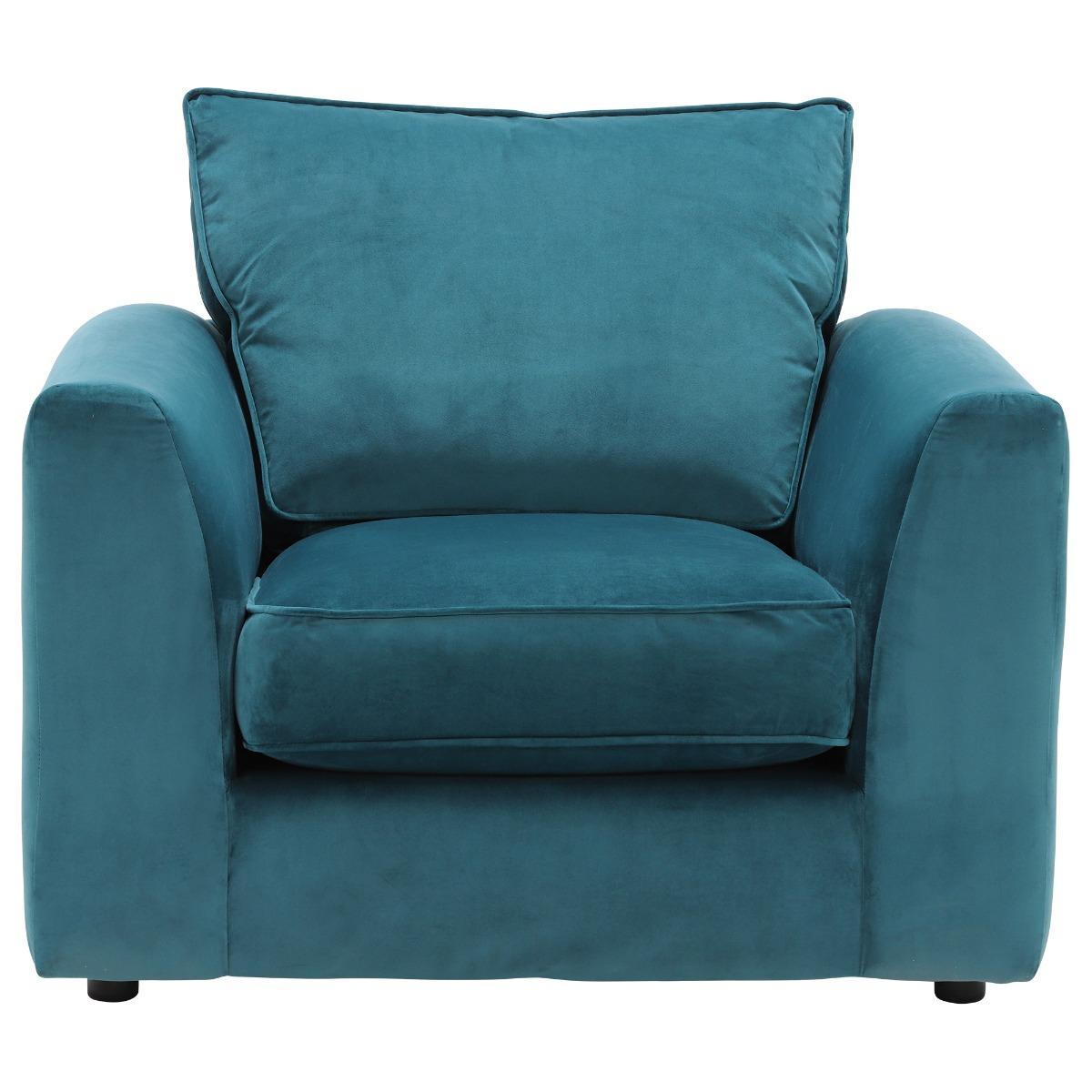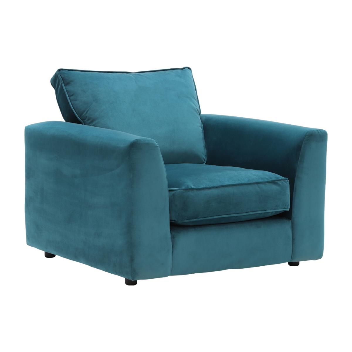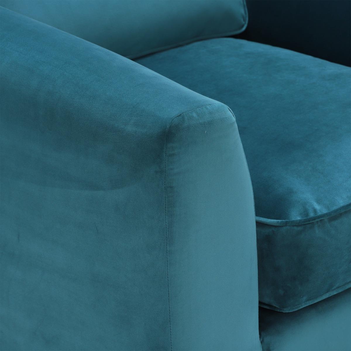 I love this armchair for its bold blue fabric and modern silhouette, which instantly adds a pop of colour to any interior. It works particularly well in contemporary living rooms or even eclectic schemes where a statement piece is desired. The Harrington chair’s plush cushions and inviting shape make it both stylish and comfortable, perfect for relaxing or casual seating areas. For styling tips, try pairing it with neutral-toned accessories or layered textures to create balance, and consider placing it near a coffee table or alongside other seating to encourage social interaction. Its versatile shade also makes it easy to incorporate into both vibrant and muted colour schemes, adding personality without overpowering the space.