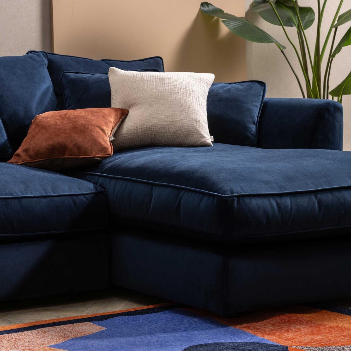 Harrington Large Chaise Corner Sofa Right, Navy Fabric | Barker & Stonehouse