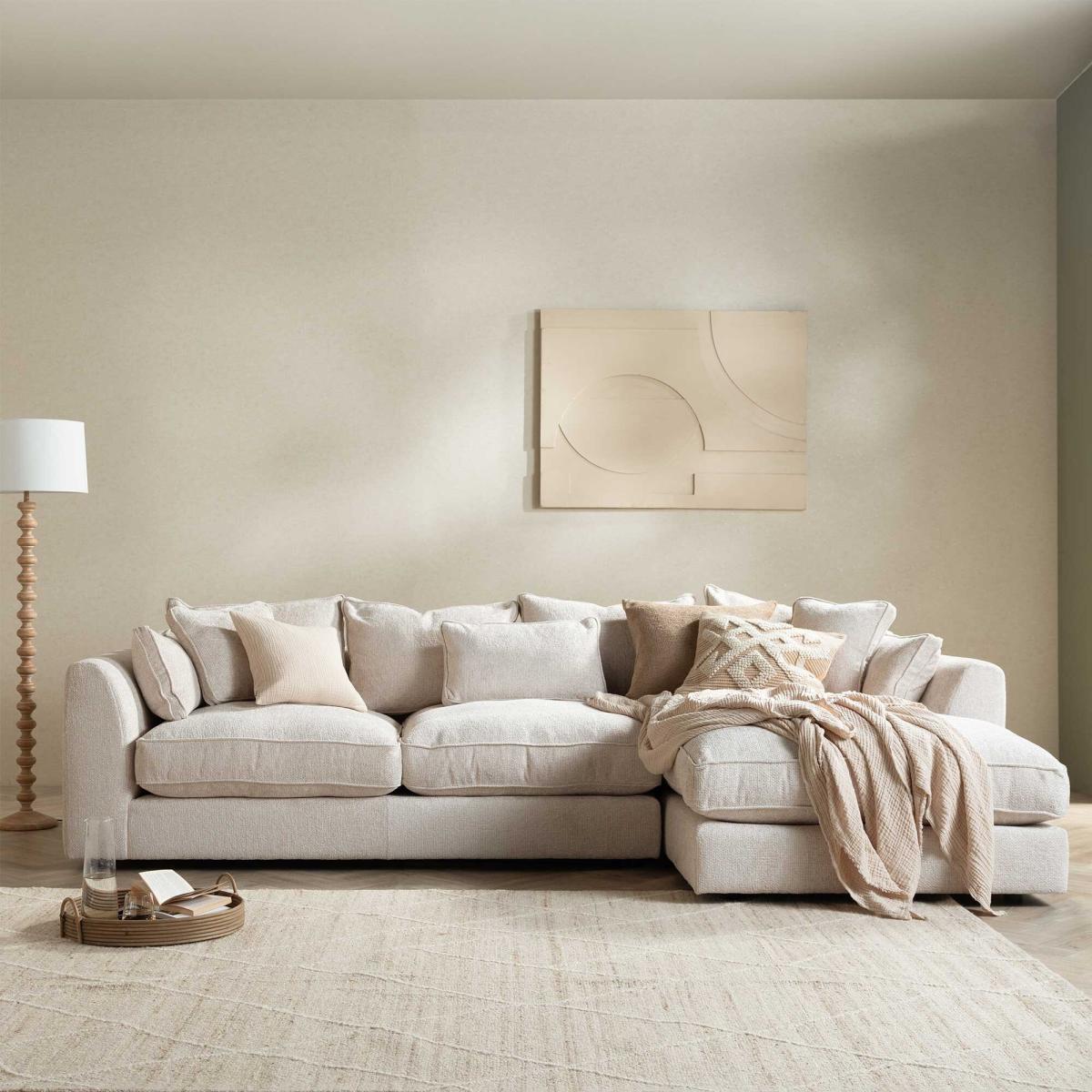 Harrington Large Chaise Corner Sofa Right, Neutral Fabric | Barker & Stonehouse