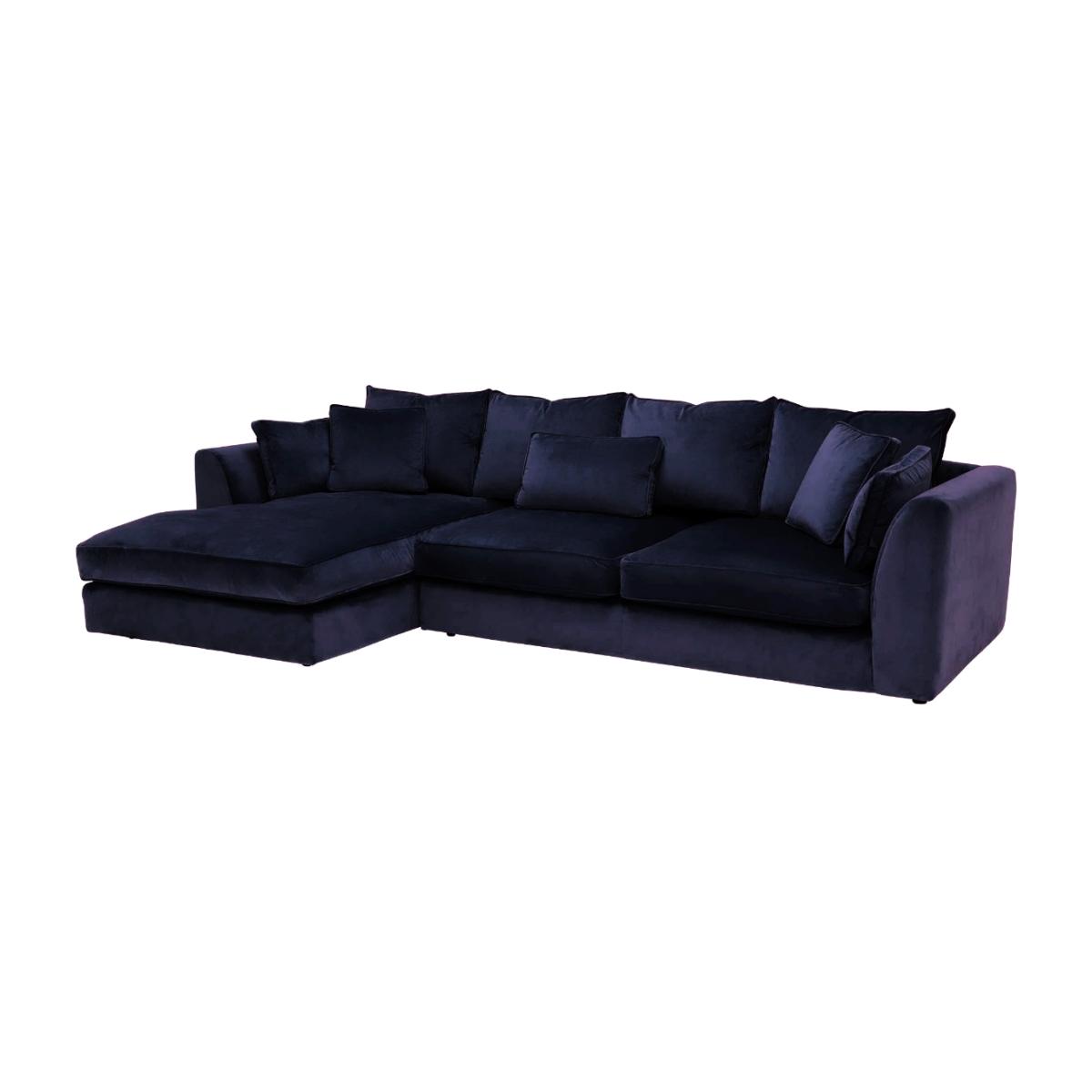 Harrington Large Left Hand Facing Chaise Sofa, Plush Indigo The striking Harrington Large Left Hand Chaise Sofa is a fantastic addition to a home looking for something a little different. Upholstered in Plush Indigo, this corner sofa features a contempora Harrington Large Left Hand Facing Chaise 4 Seater Sofa, Purple Fabric | Barker & Stonehouse