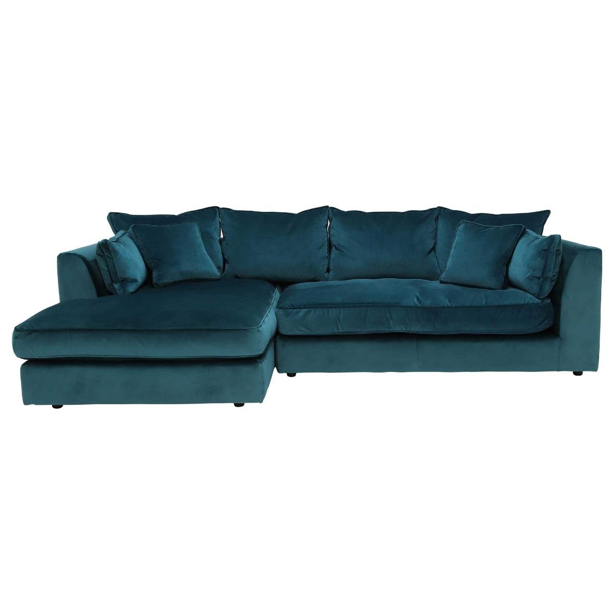 Design. We're excited to be able to offer you our favourite Harrington Chaise in a more compact design, perfect for smaller homes. The striking Harrington Small Chaise LHF Sofa with Foam Interior will add a statement look to a living space, with its bold Lumino Teal colour and stylish design. It features a contemporary shape with elegantly tapered arms and a cushion back for an informal feel. The Harrington range features a contemporary design with a luxury velvet finish and elegant tapered arms. Deep seated feather and fibre filled cushions add sumptuous comfort.