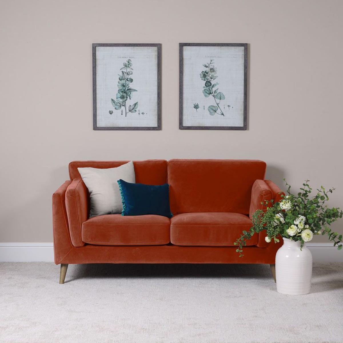 The Harris 2 seater sofa is sure to take centre stage in your living room. Upholstered with a gorgeous soft velvet fabric and angled legs in a natural wood finish emphasizing its relaxed effortless design. Add the finishing touches with a couple of neutral scatter cushions and throws for a cosy night in. This sofa is also available as a 3 seater sofa and in other gorgeous velvet shades.