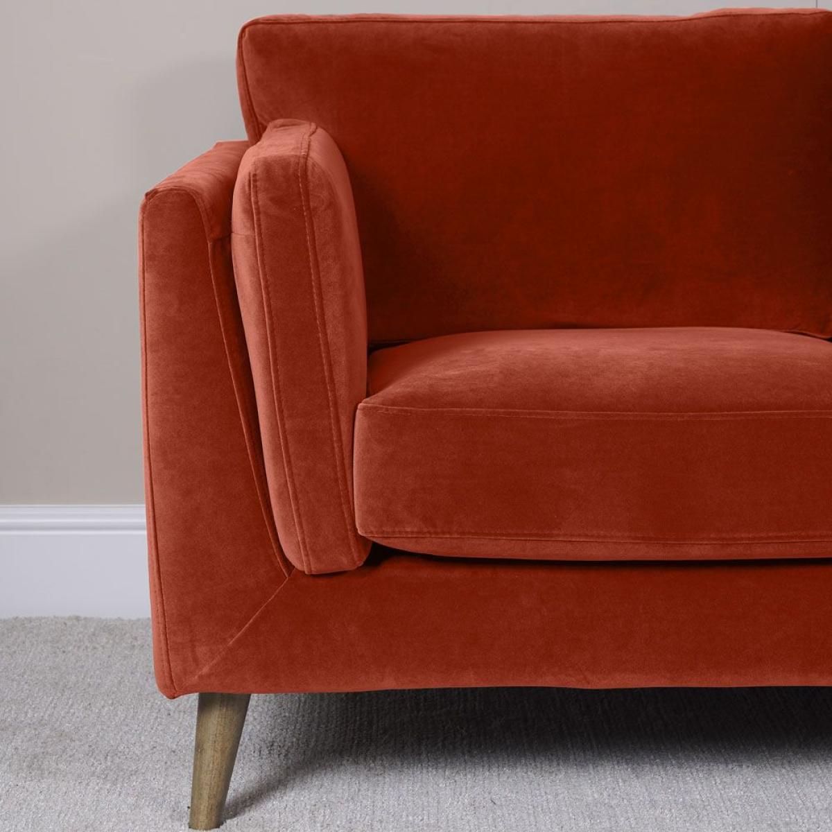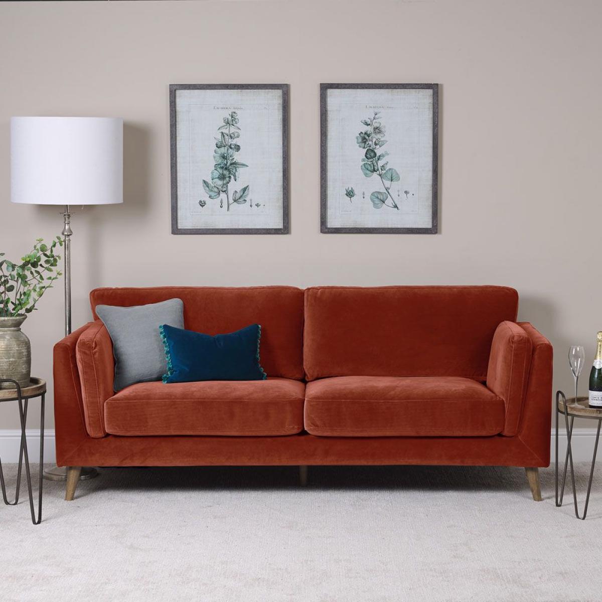The Harris 3 seater sofa makes a comfortable place to relax in your home. Upholstered in a sumptious soft velvet, which combined with its angled natural wood finished legs makes it easy to fit in with most home decor styles. Also available as a 2 seater sofa and in a range of other gorgeous velvet shades. Dimensions: W210cm x D89cm x H84cm Polyurethane foam and pocket spring cushions with baffled back cushions. Swatch available on request. Simple self assembly