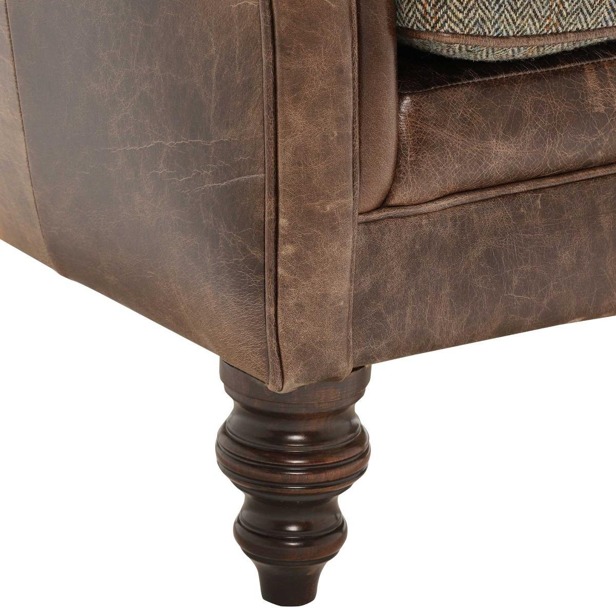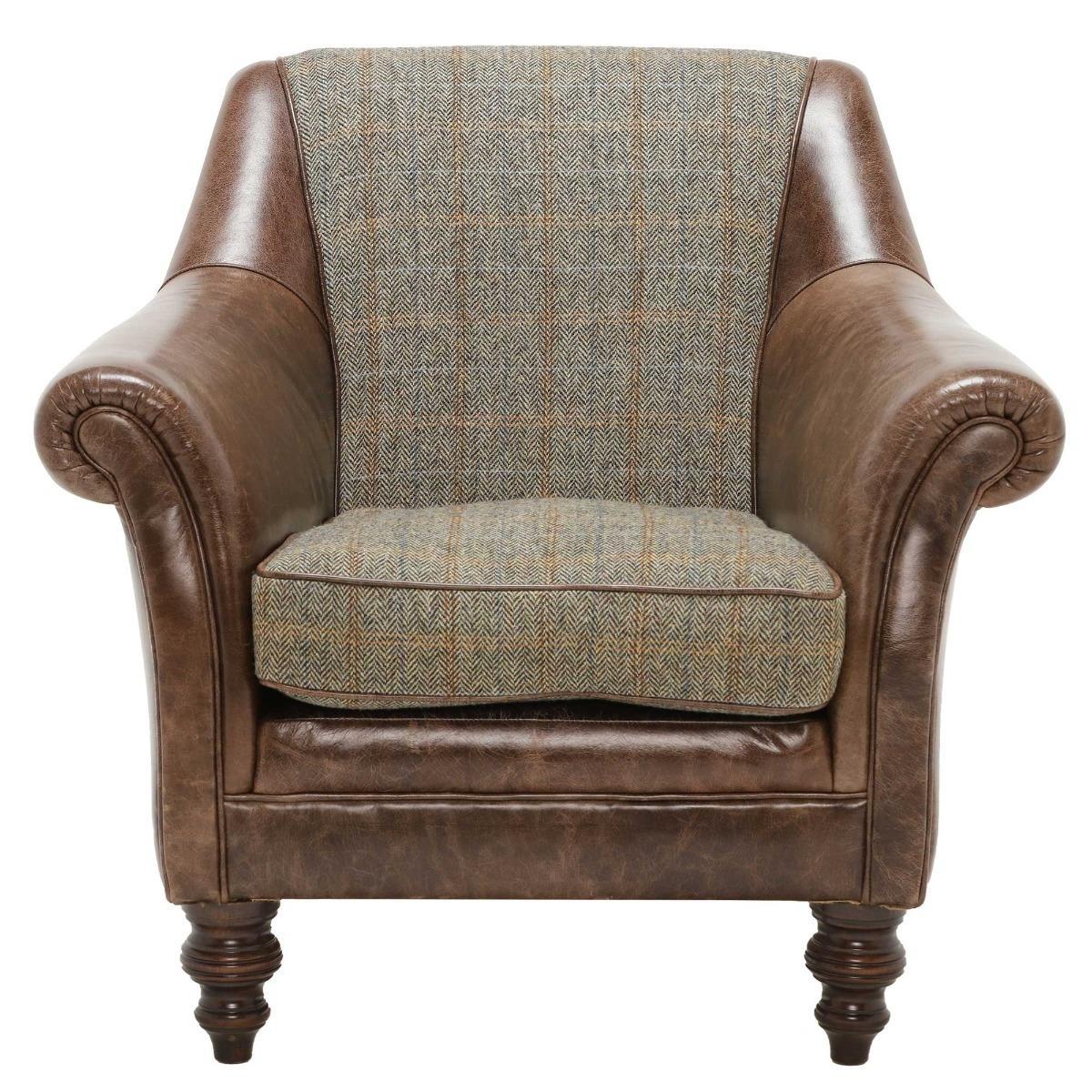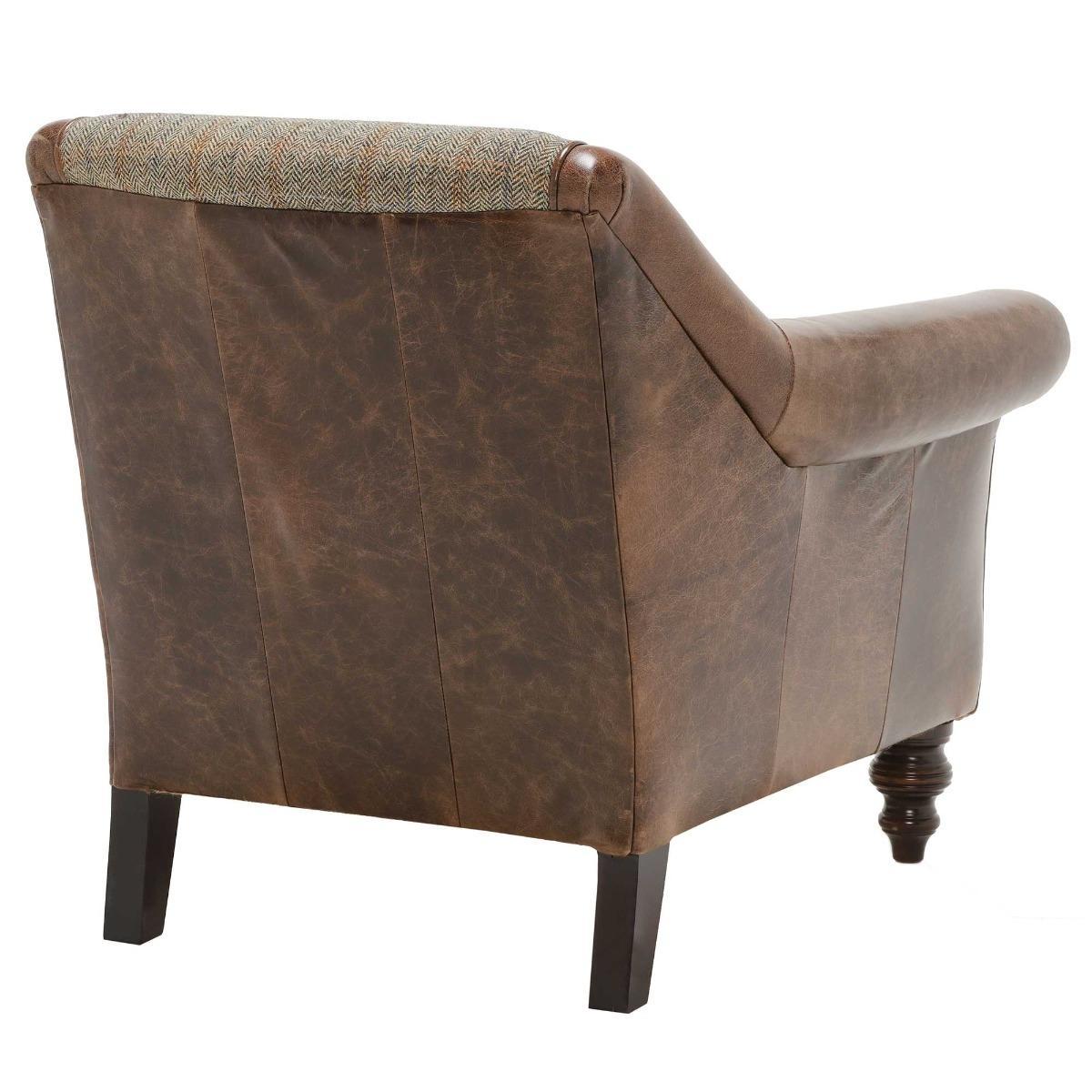 Harris Tweed Leather Dalmore Accent Chair Bracken Herringbone