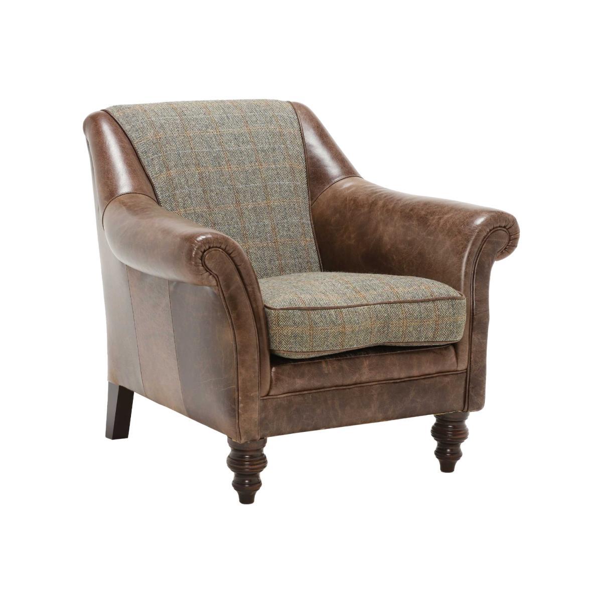Design. The perfect addition to your interior, ideal for creating a cosy corner in your favourite room. The soft, feather filled seat pad and stunning combination of Leather and Harris Tweed make the Dalmore Accent Chair a timeless piece that you will enjoy for many years to come.