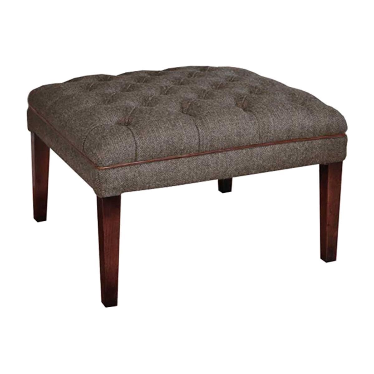 Design. An elegant long legged square stool with hide buttons and piping. This stool clearly complements the Mac Kenzie chair but would also work with other pieces in the Harris Tweed Collection. Combining Tetrad's signature expert craftsmanship with the hard wearing and prestigious Harris Tweed creates a collection which exudes quality and style whilst also typifying just what makes Britain great - that wonderful sense of heritage, quality and tradition.