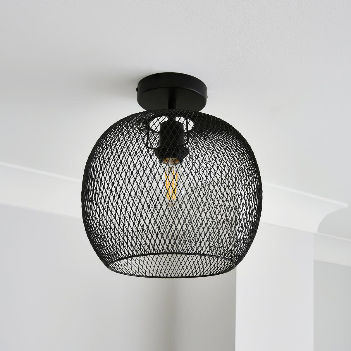 The Harrison Flush Ceiling Fitting features a round mesh shade which has been constructed from durable steel in a sleek matte black finish to match any home interior. It's compatible with a dimmer switch so you can set the perfect ambience in your home. Good things come to those who coordinate, so why not pair this light with its matching family items?