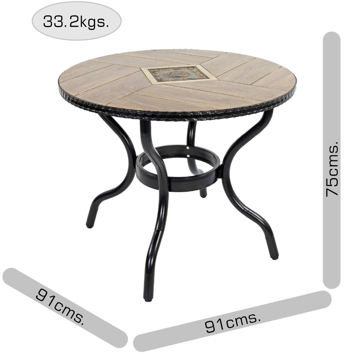 * Outdoor Table* Crafted from Metal and Stone* Hand Laid Tiles Hand-laid tiles grace the surface of this patio table, showcasing meticulous craftsmanship. Adjustable table feet provide stability, and minimal assembly ensures a hassle-free setup. Crafted for both indoor and outdoor use, this patio table offers versatility and style. The inclusion of a parasol hole enhances its practicality, providing shade on sunny days and making it an ideal choice for your outdoor gatherings.