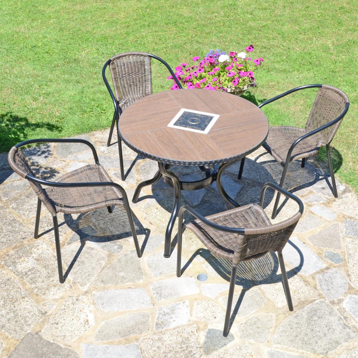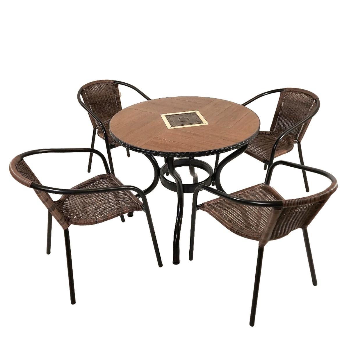 Harrison 91cm Patio Table with 4 Springdale Chairs Set Brown