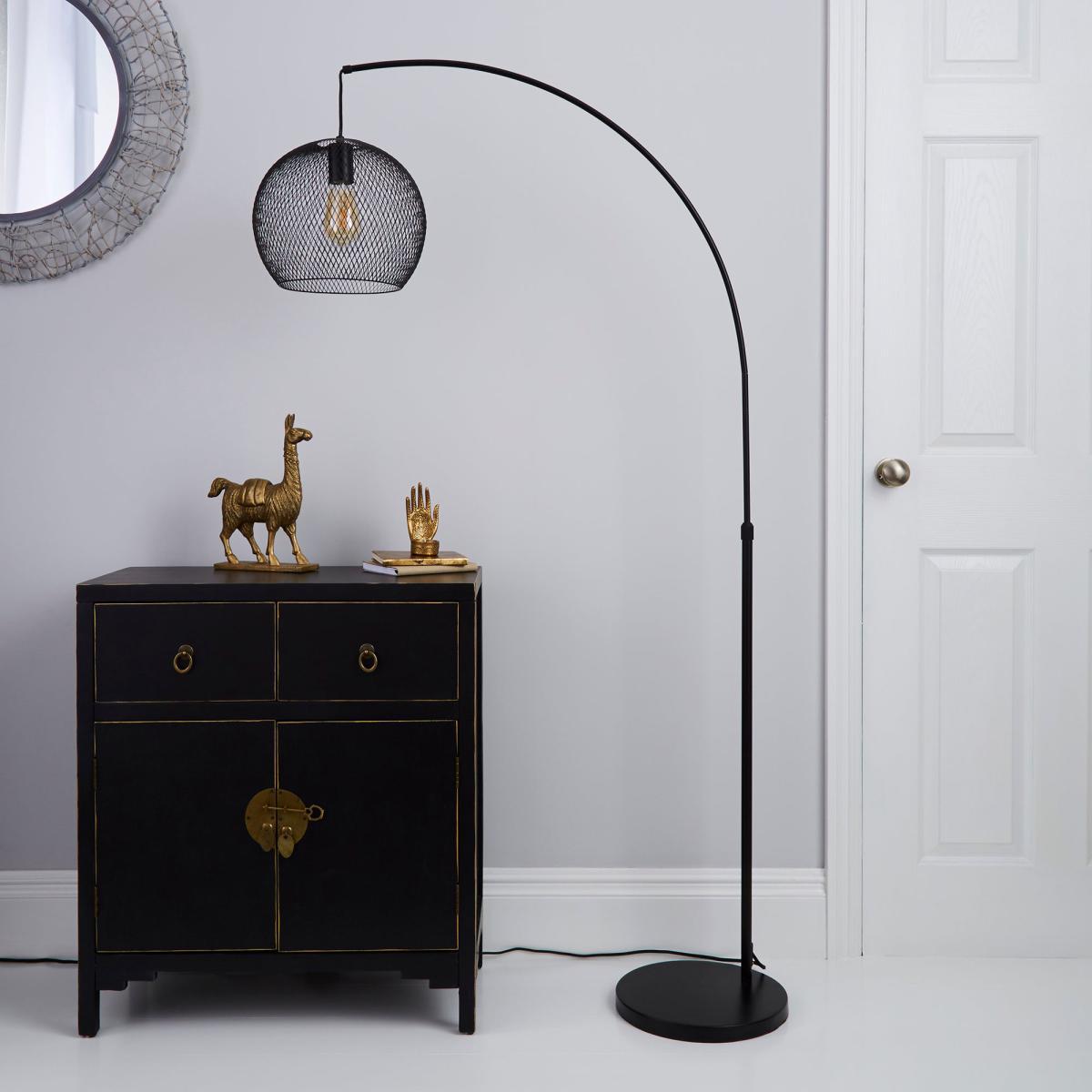 Create that contemporary look with the stunning Harrison Arc Floor Lamp, featuring a curved arm with a mesh shade for cool light output, constructed with durable steel, completed with a matt black finish and a cable length of 200cm. This floor lamp comes with a 2 year guarantee. Click [here](https://www. dunelm. com/info/help/terms-and-conditions#lighting-guarantee ) to view our terms and conditions.